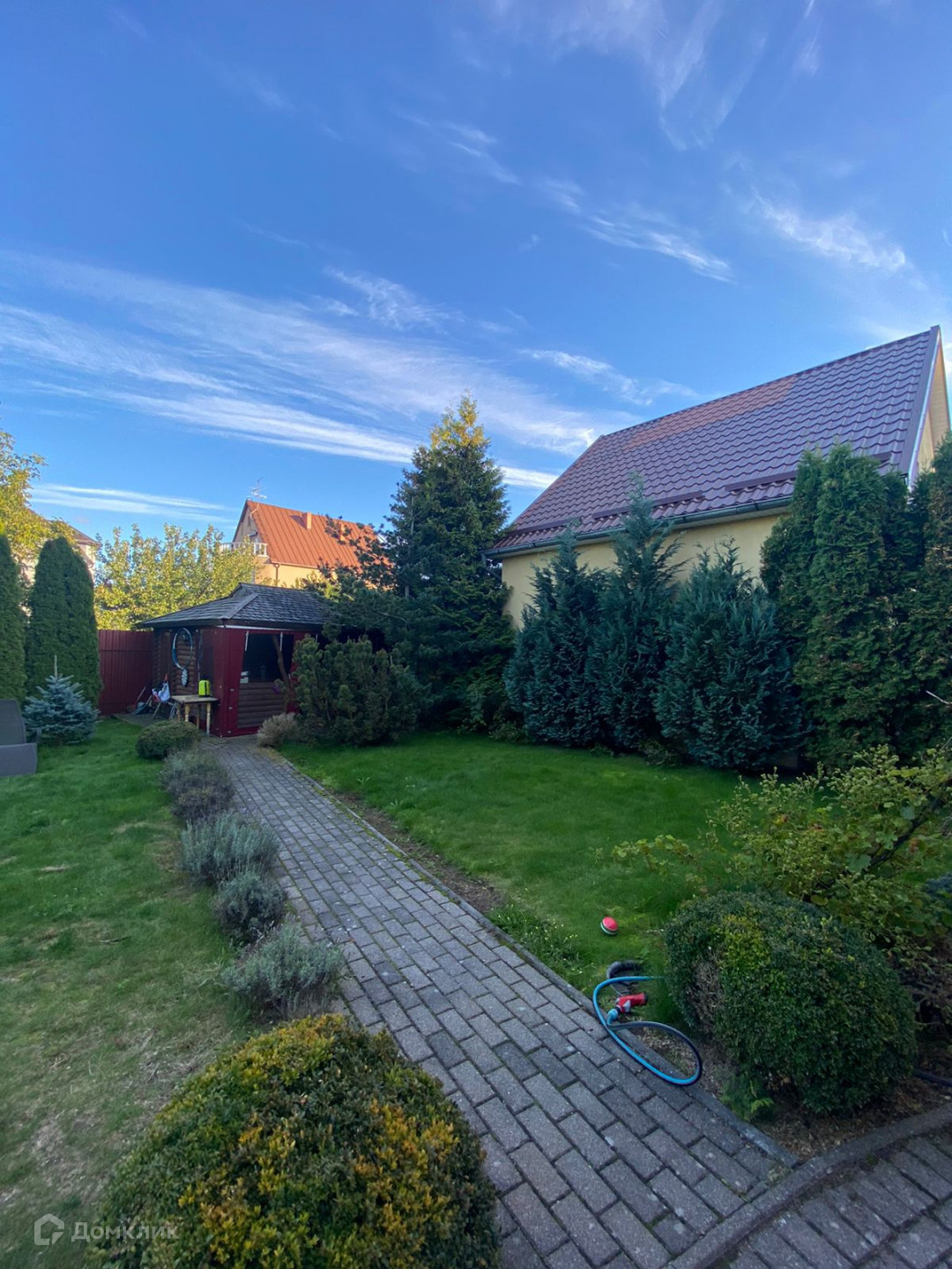 Парковка в дворе позволяет разместить до трех автомобилей. За домом располагается  зона отдыха с барбекю.