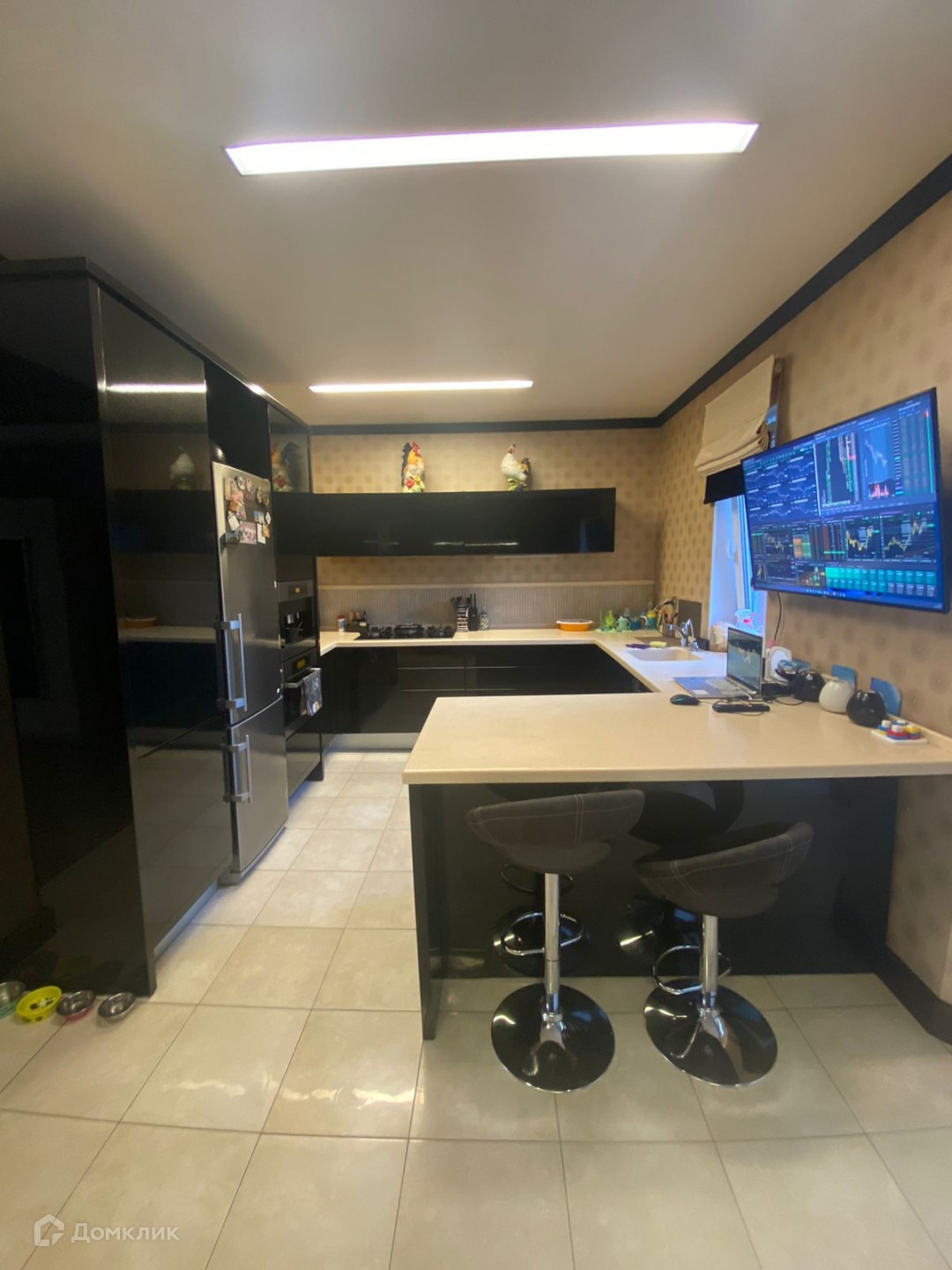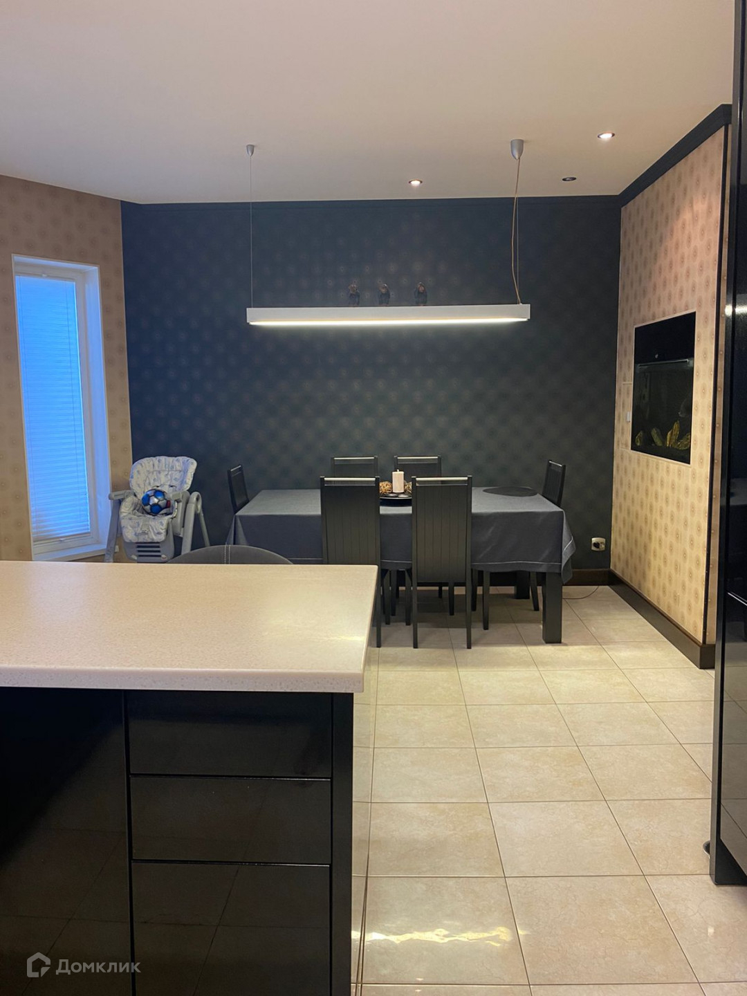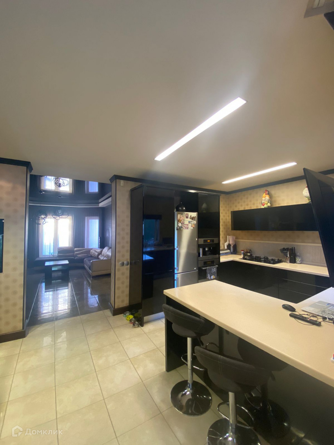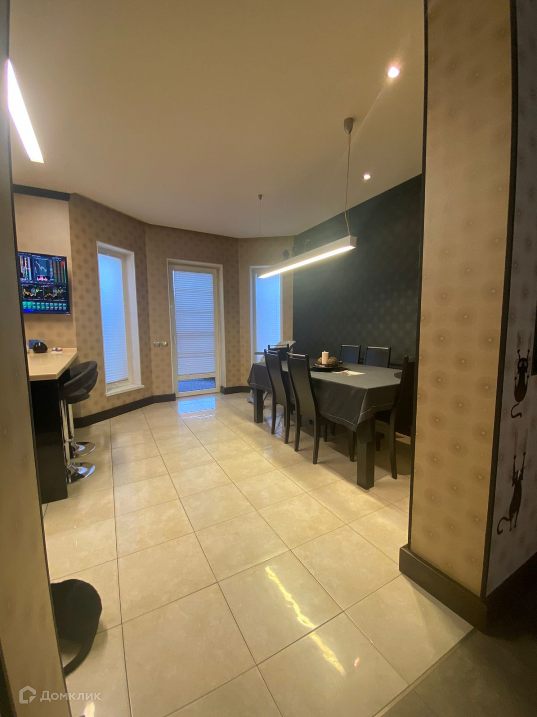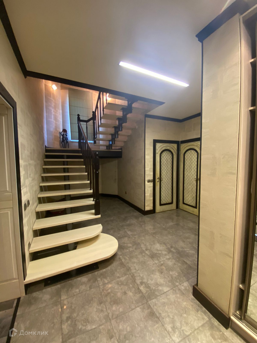 На первом и втором этажах полы с подогревом, покрыты итальянской плиткой. В доме панорамные энергосберегающие окна, зонированное освещение. Лестница изготовлена из натурального дерева. Двери из массива. В доме современная, удобная мебель. Функциональный кухонный гарнитур оснащен качественной техникой (Miele), столешница из искусственного камня.