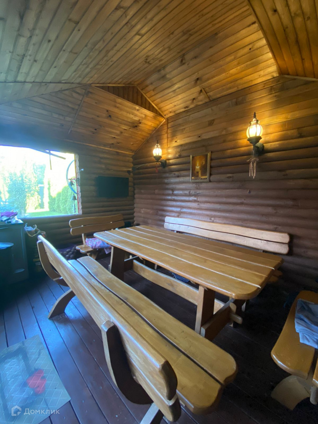 Утеплённая беседка из брёвен и дуба,включающая в себя подсобное помещение.