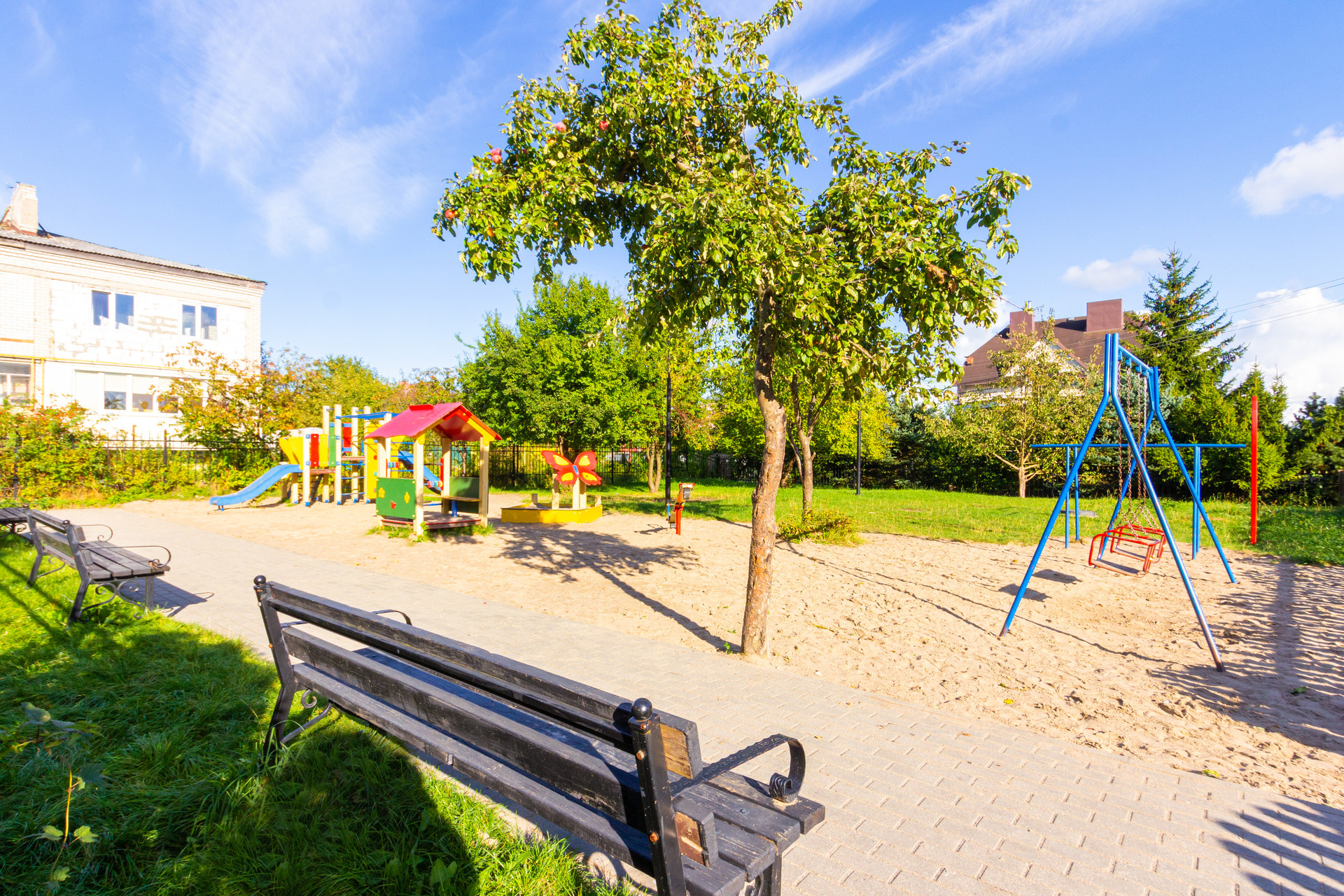 Дополнительную безопасность обеспечивает огороженная территория всего дома. Во дворе своя вместительная наземная закрытая парковка. Детская площадка находится во дворе за ограждением с калиткой. Доброжелательные соседи. Тихая и спокойная жизнь.