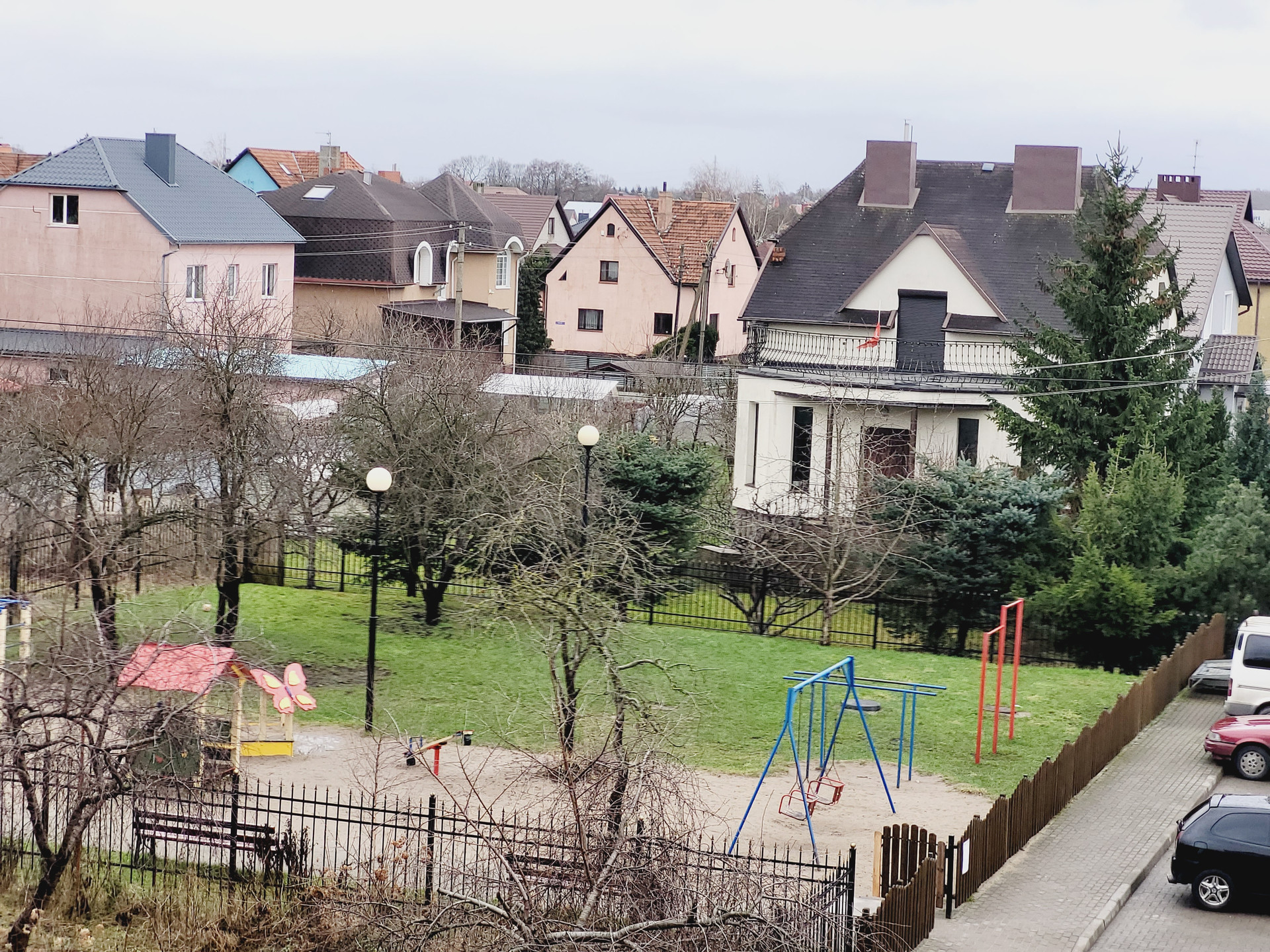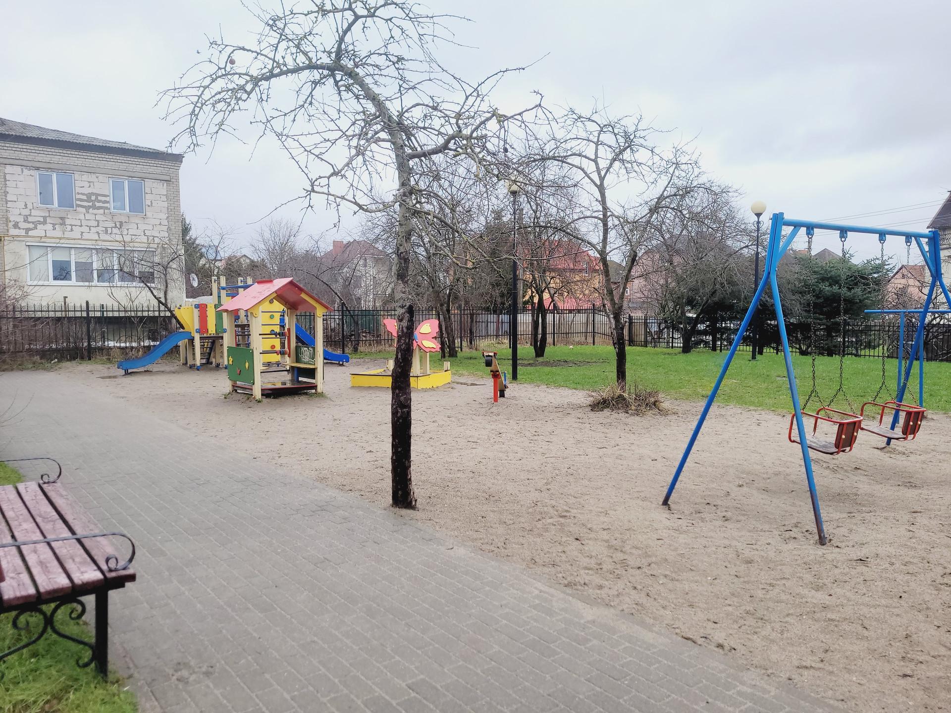 Дом с огороженной территорией, во дворе детская площадка, достаточное количество парковочных мест.