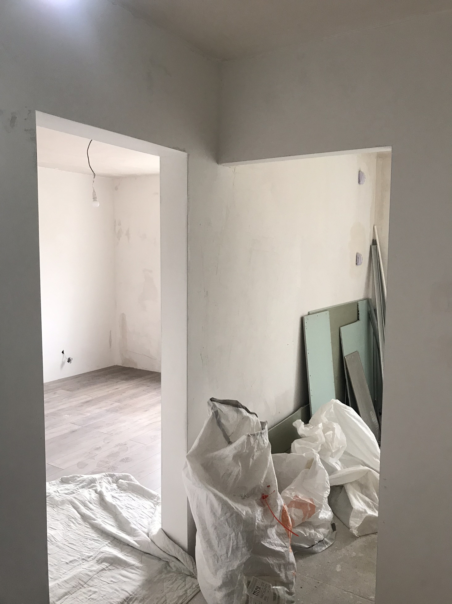 Стены зашпаклеванны проёмы сделаны,