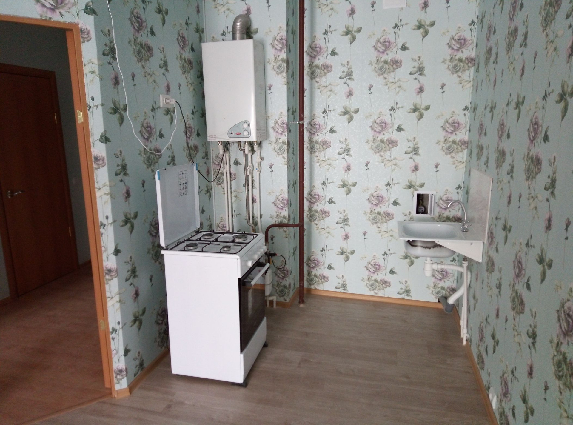 Квартира оснащена всем необходимым для комфортной жизни, включая совмещённый санузел и проведённый газ.