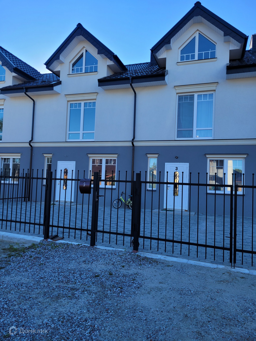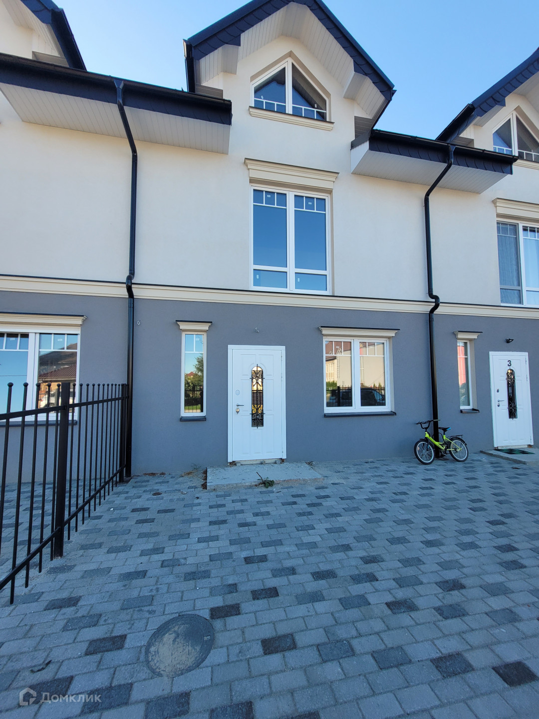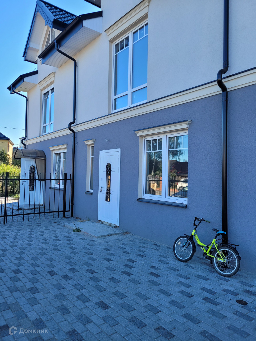 Полностью благоустроенная территория: уложена красивая и современная тротуарная плитка, парковка перед домом на два автомобиля. Установлен забор с откатными воротами.