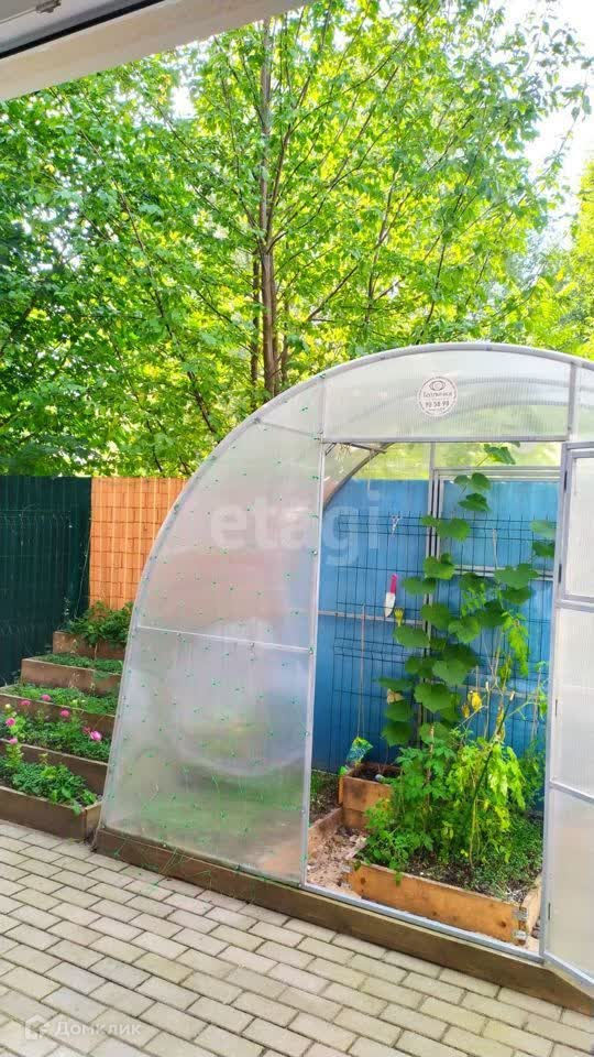 На заднем дворе есть небольшая теплица.