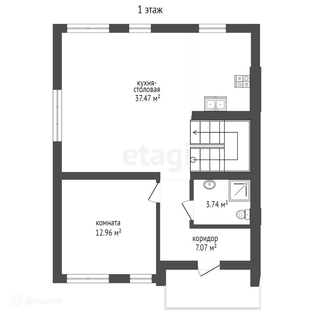 Первый этаж - с/у, кухня-гостиная, кабинет.