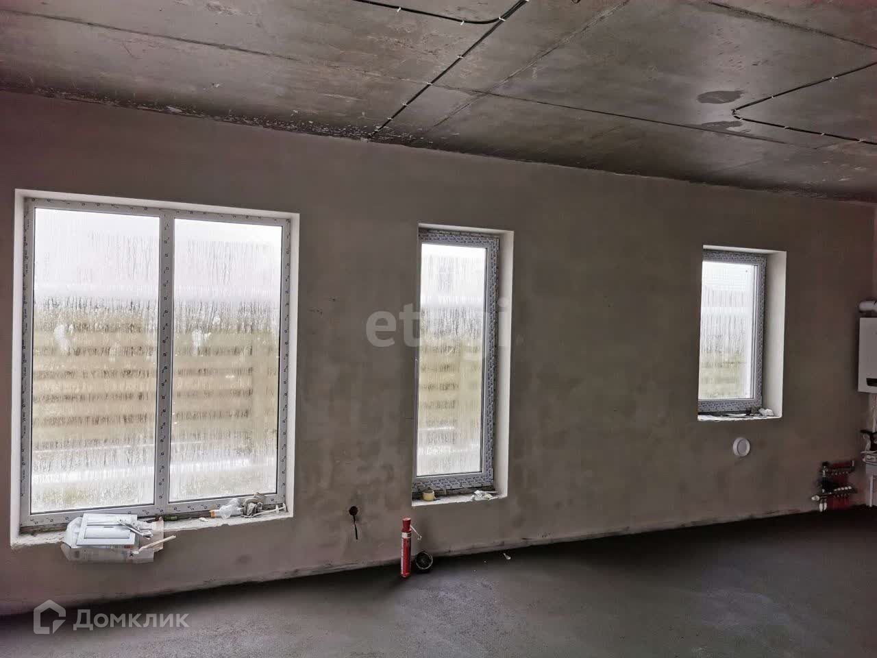 Фундамент - монолитная железобетонная плита, стены газоблок, оштукатурены гипсовой штукатуркой, лестница монолит, перекрытие монолит, кровля керамика, окна 6-тикамерные 3-и стекла.