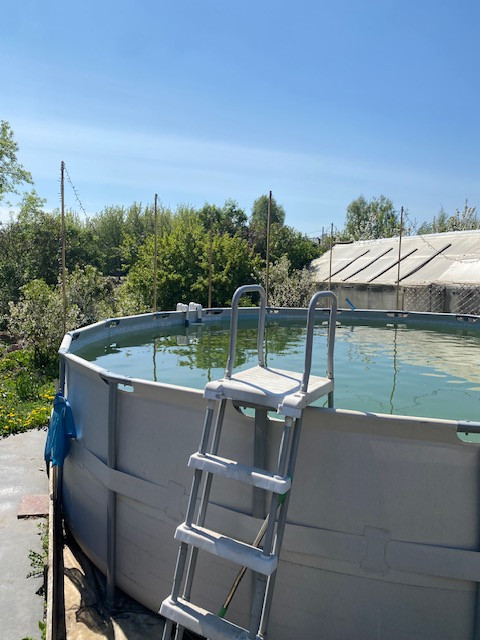 Баня 30 кв.м, оборудованная просторная летняя кухня, каркасный бассейн диаметром 5м., зона барбекю.
