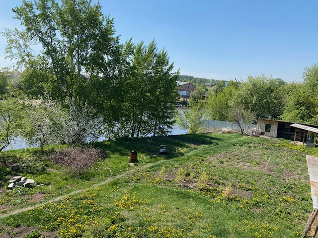 Большой приусадебный участок 18 соток, выходящий на берег реки (+ собственная прибрежная зона около 5 соток), с посадками плодово-ягодных деревьев (яблони, груши, вишня, барбарис, и т.д.). Теплица. Вода для полива проведена по участку.  Хвойные деревья.