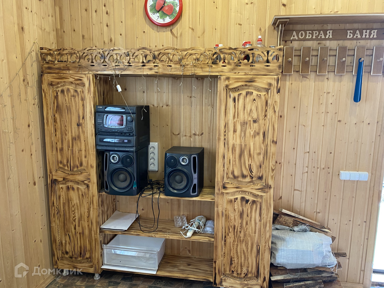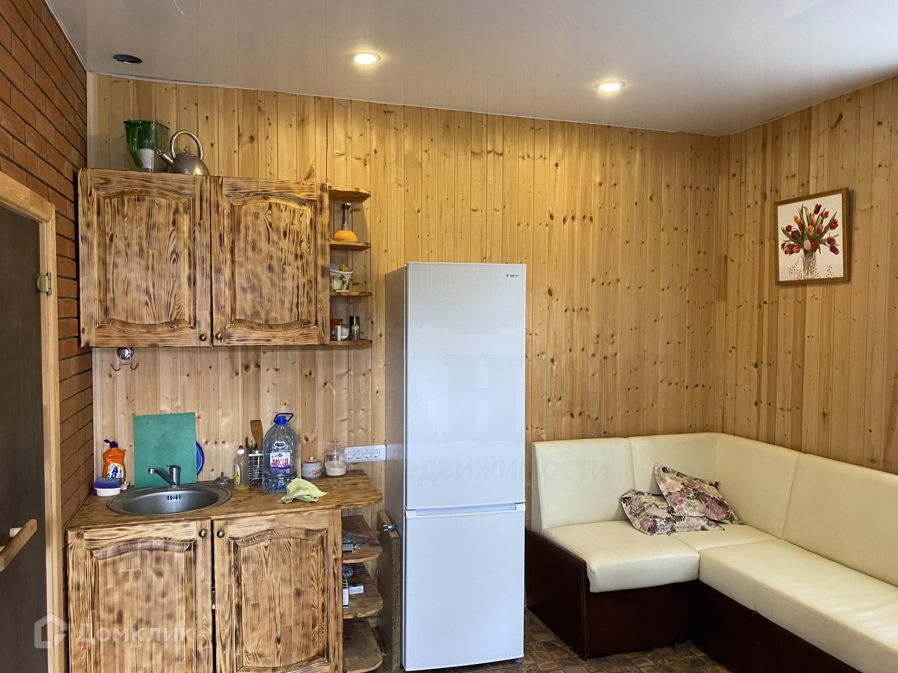 На участке есть баня , как гостевой дом. В нем кухонный гарнитур ручной работы, диван, туалет, душевая.