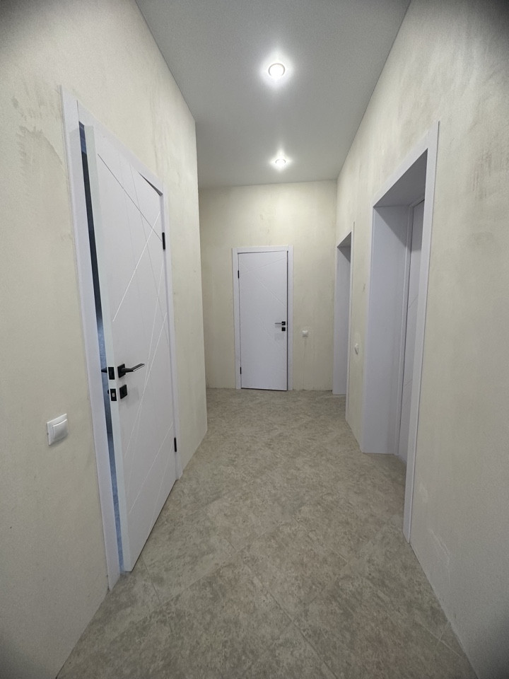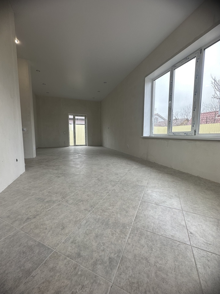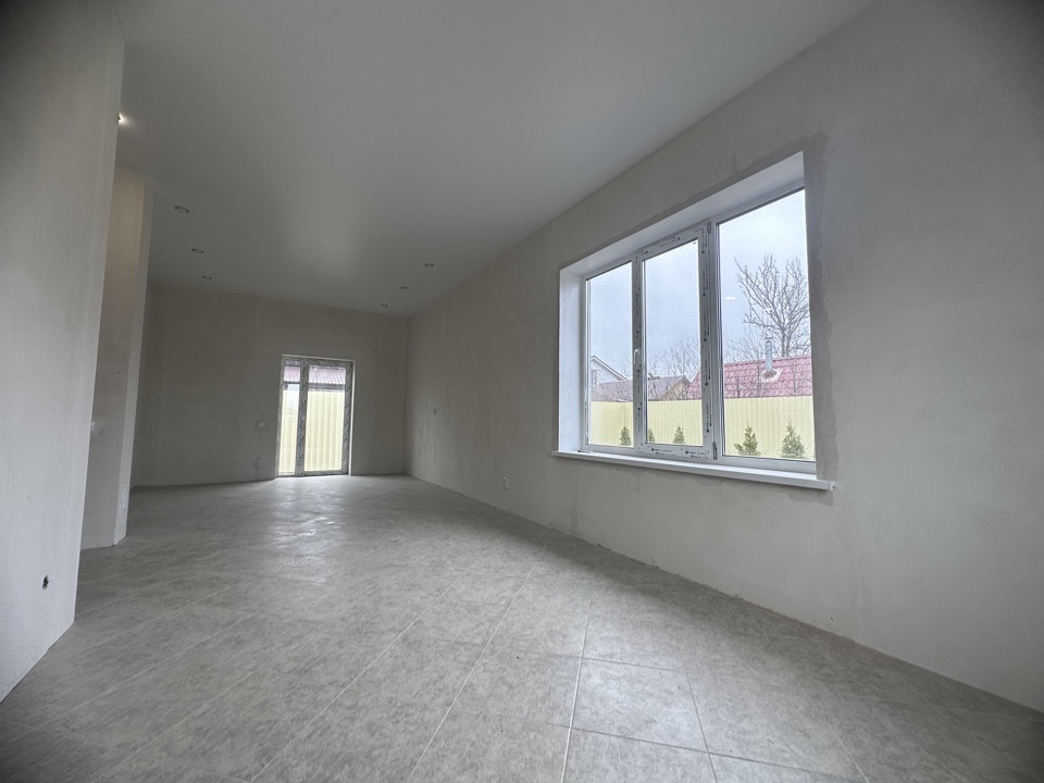 Установлены межкомнатные двери. Отопление-электрическое, вода-скважина, канализация-ж/б кольца, по всему дому на полу постелена плитка, сан узел в кафеле, натяжной потолок!