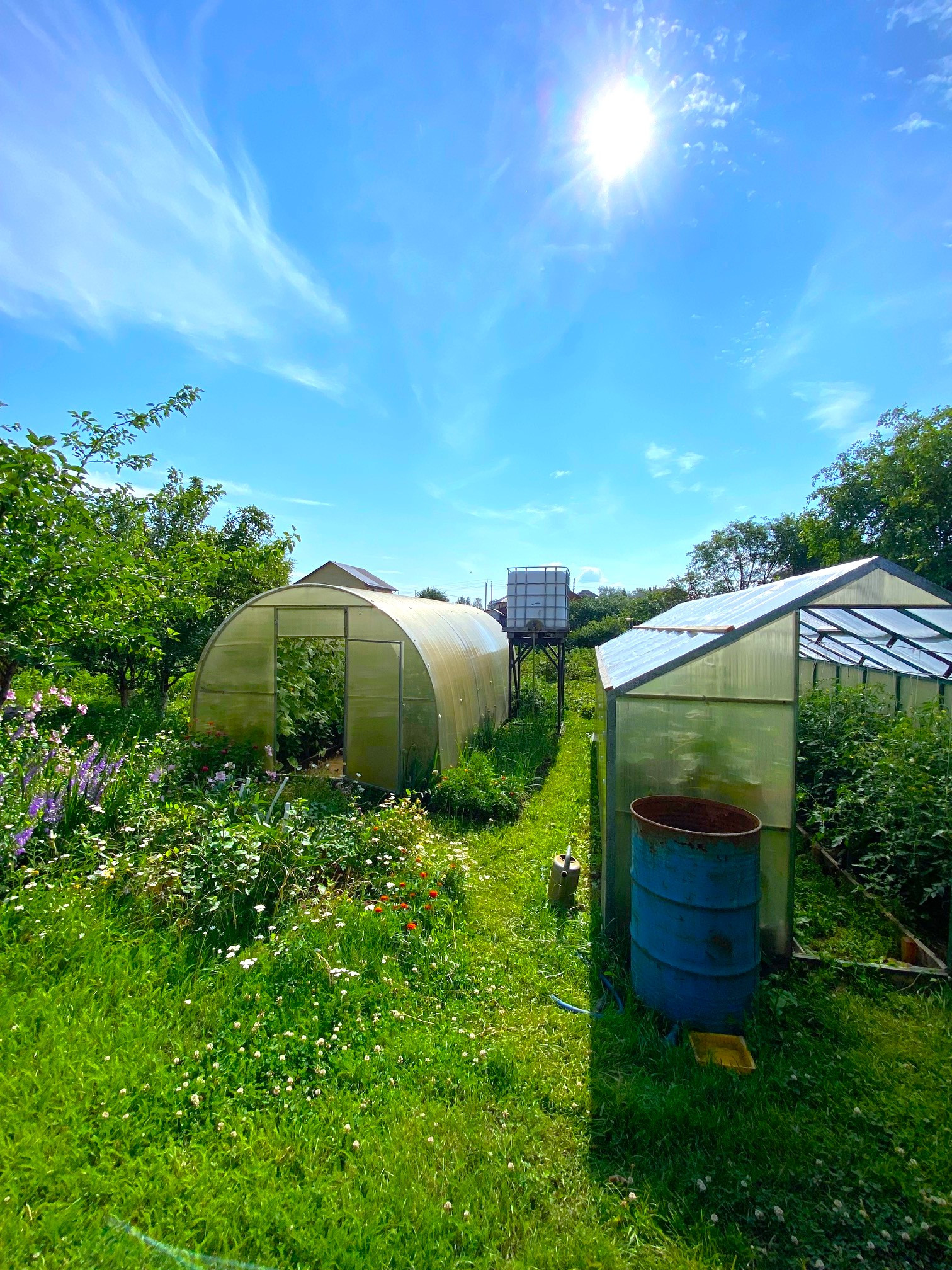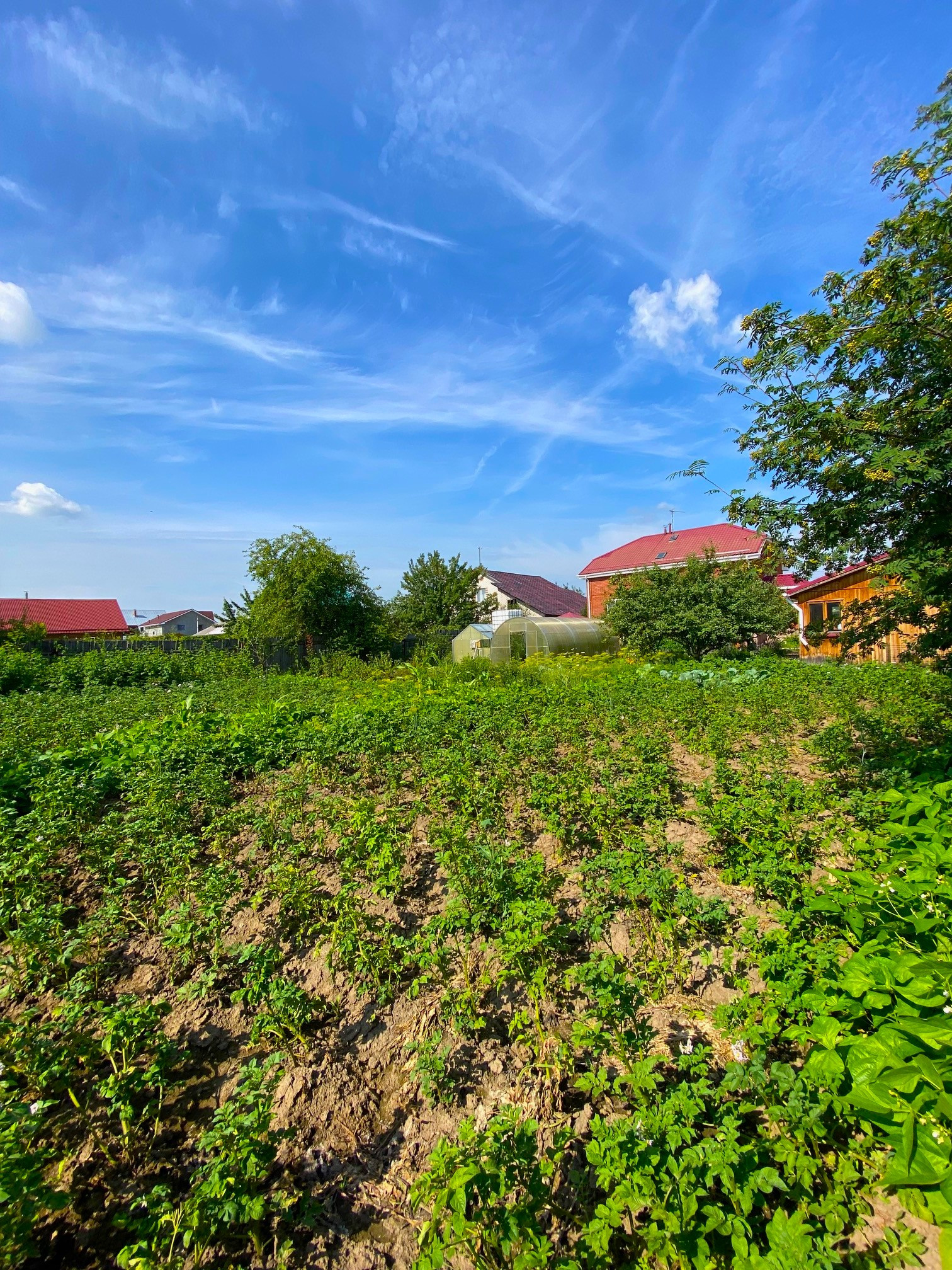 Участок разработан, ухожен, по периметру установлен забор. Растет практически всё: яблони, груши, слива, вишня, смородина, клубника, крыжовник, жимолость, малина, ирга, черноплодка..