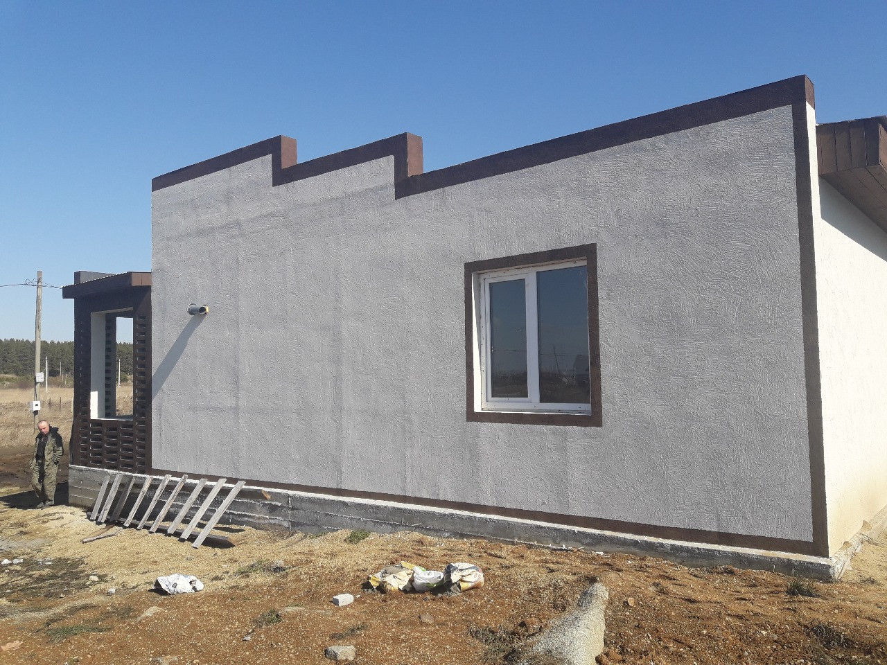 В доме две раздельные комнаты, кухня-гостиная, котельная, сан узел.