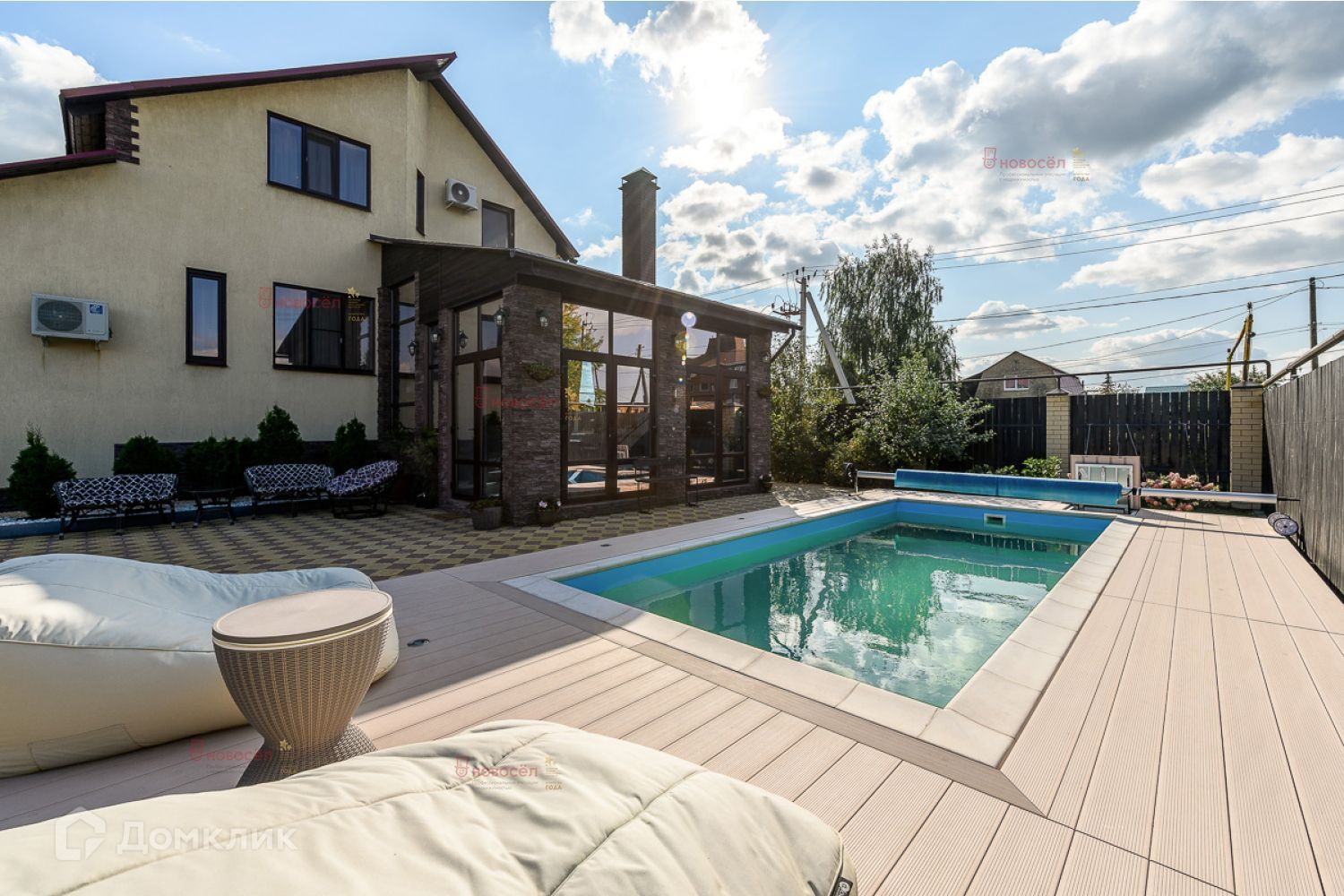 На участке современный бассейн с фильтрацией, нагревом и освещением (работает с апреля по октябрь), костровище для семейных посиделок.