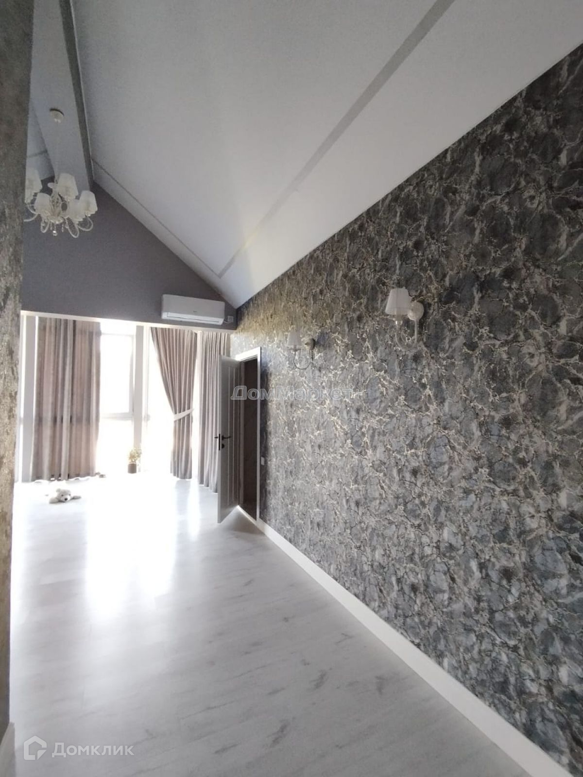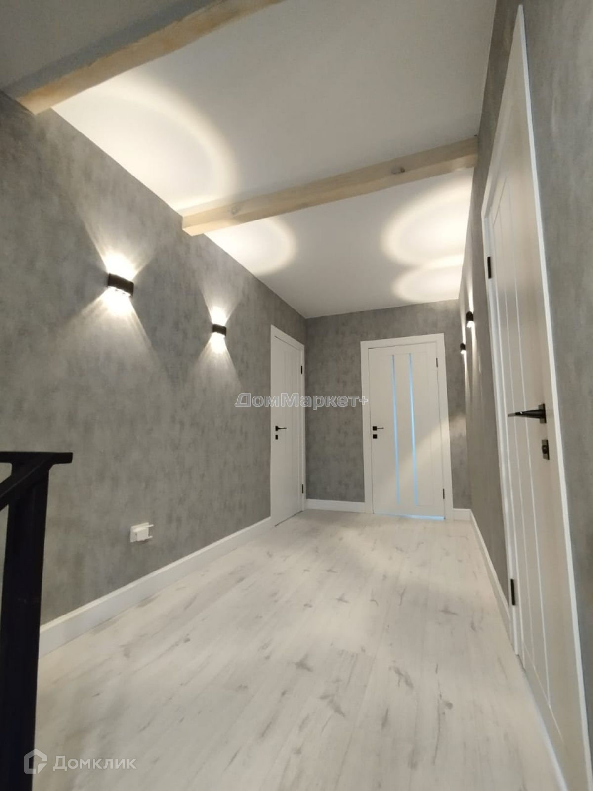 Дом построен из бруса , утеплен , обшит металлическим сайдингом под имитацию дерева, центральное водоснабжение, канализация септик,три кондиционера пол ламинат , стены выравнены –покраска, обои, натяжные потолки.