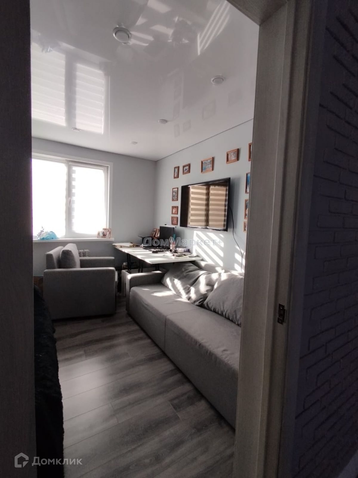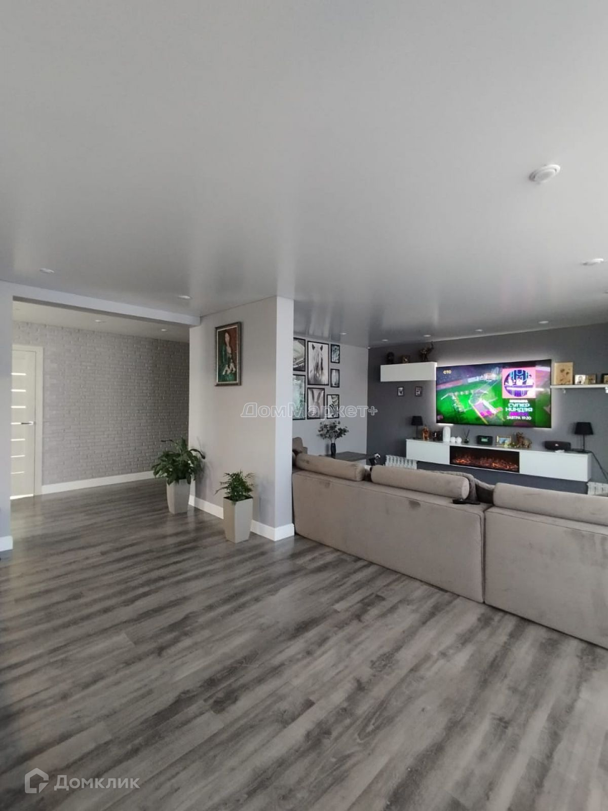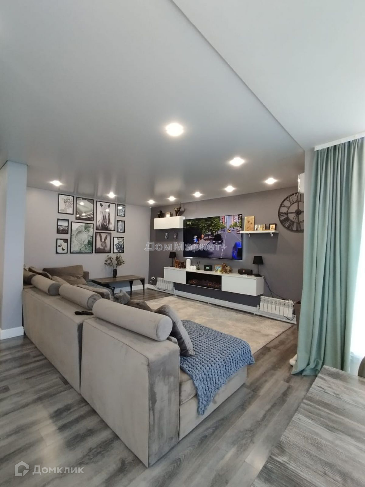 Кухня – гостинная: электрический камин,который включая добавляет домашнего уюта, встроенный кухонный гарнитур , со встроенной бытовой техникой , угловой диван , обеденная группа: стол,четыре стула, журнальный столик.