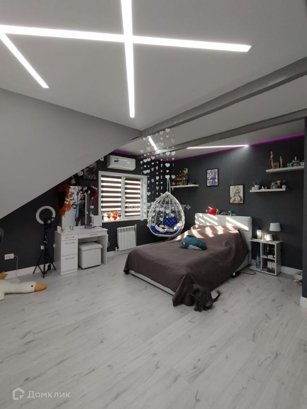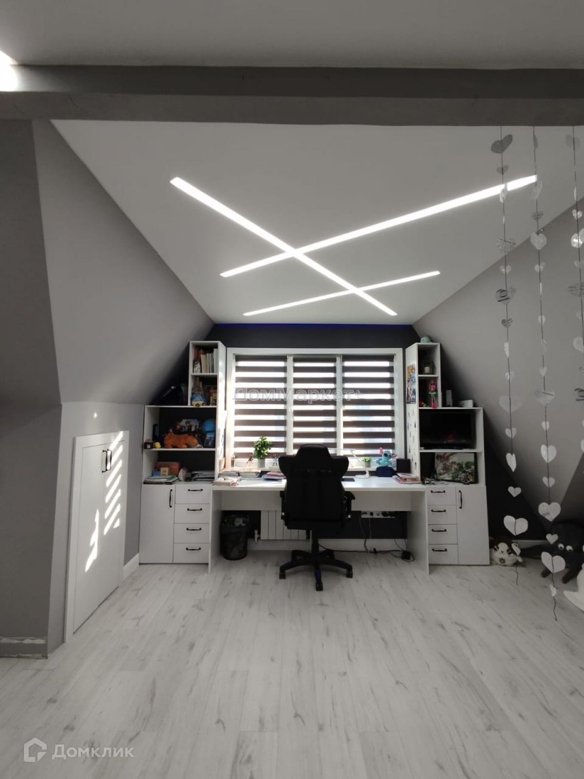 Детская спальня с теплым электрическим полом: встроенная система шкафов , двух спальная кровать. стол письменный, стул компьютерный , туалетный столик с пуфом, декоративные полки,