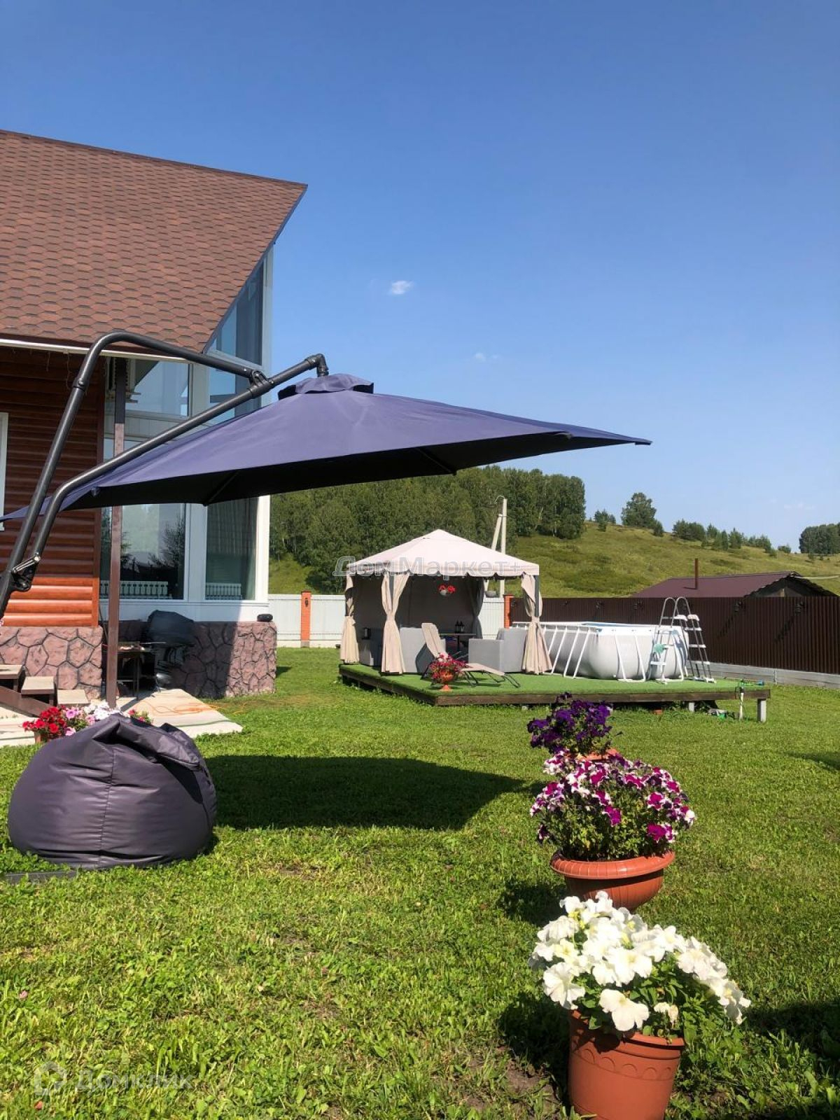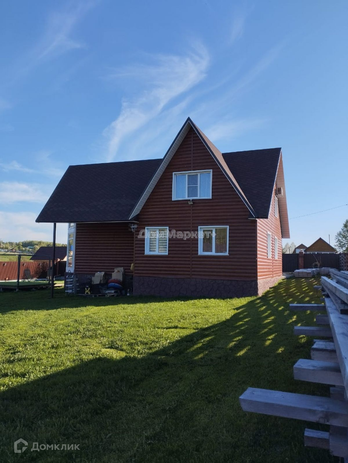 Дом отапливается твёрдотопливным и электрическим котлом. Отдельно стоящая котельная Заезд на территорию дома с обеих сторон улицы, ворота распашные. Территория дома огорожена забором: капитальный бетонный фундамент, столбы из кирпича, двухсторонний сайдинг, освещение по территории дома по периметру фонарями, бассейн 4,5*1,5 м. Зона для отдыха : площадка на сваях , покрытая зеленой искувственной травой , куда устанавливается шатер , бассейн, мягкая садовая мебель, лежаки.