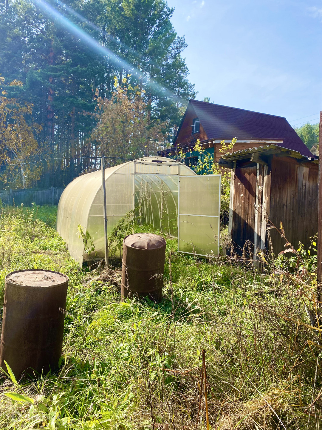 Участок 10 соток, ровный, разработан. Земля хорошая, плодородная. На участке есть теплица из поликарбоната на металическом каркасе, навес для садового инвентаря, хорошая Баня, дровяник с навесом(остаётся более 4 кубов дров).