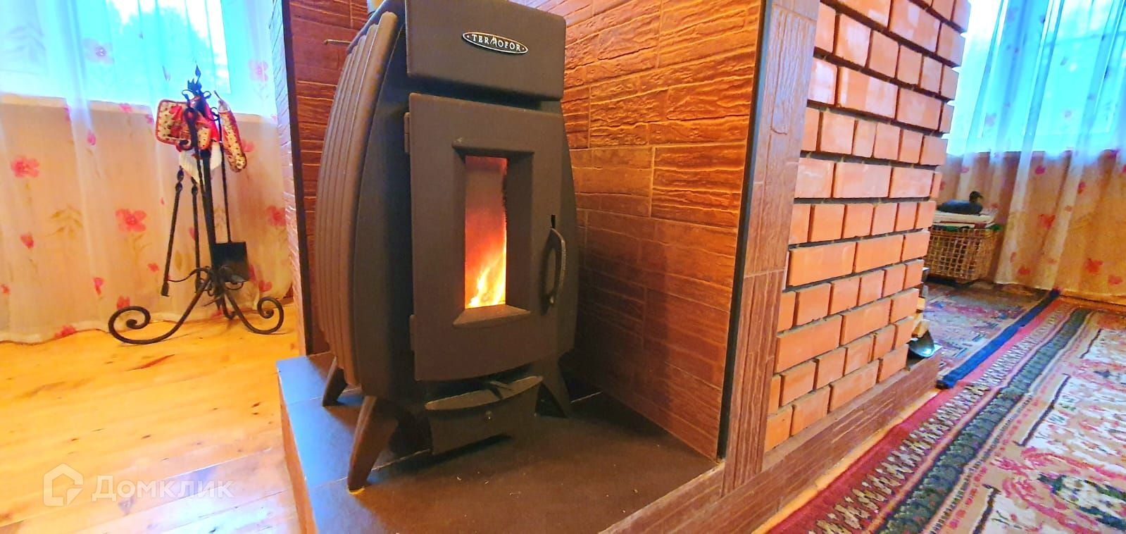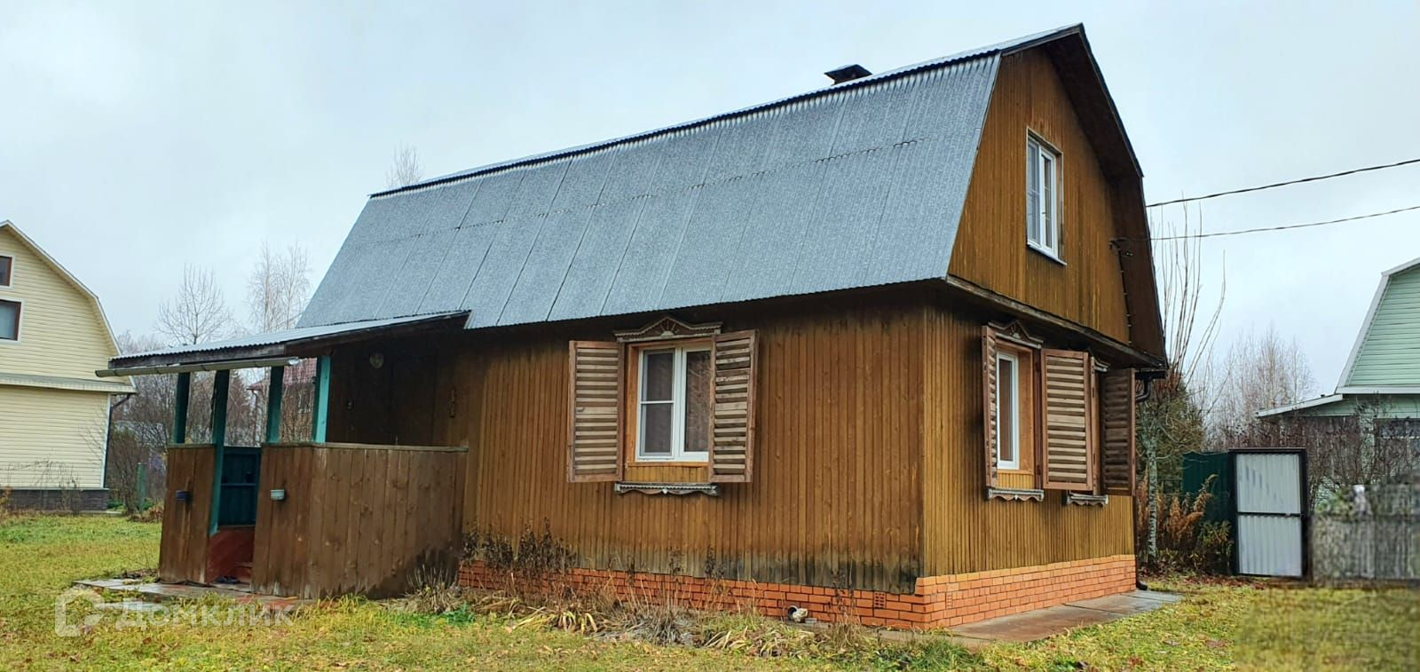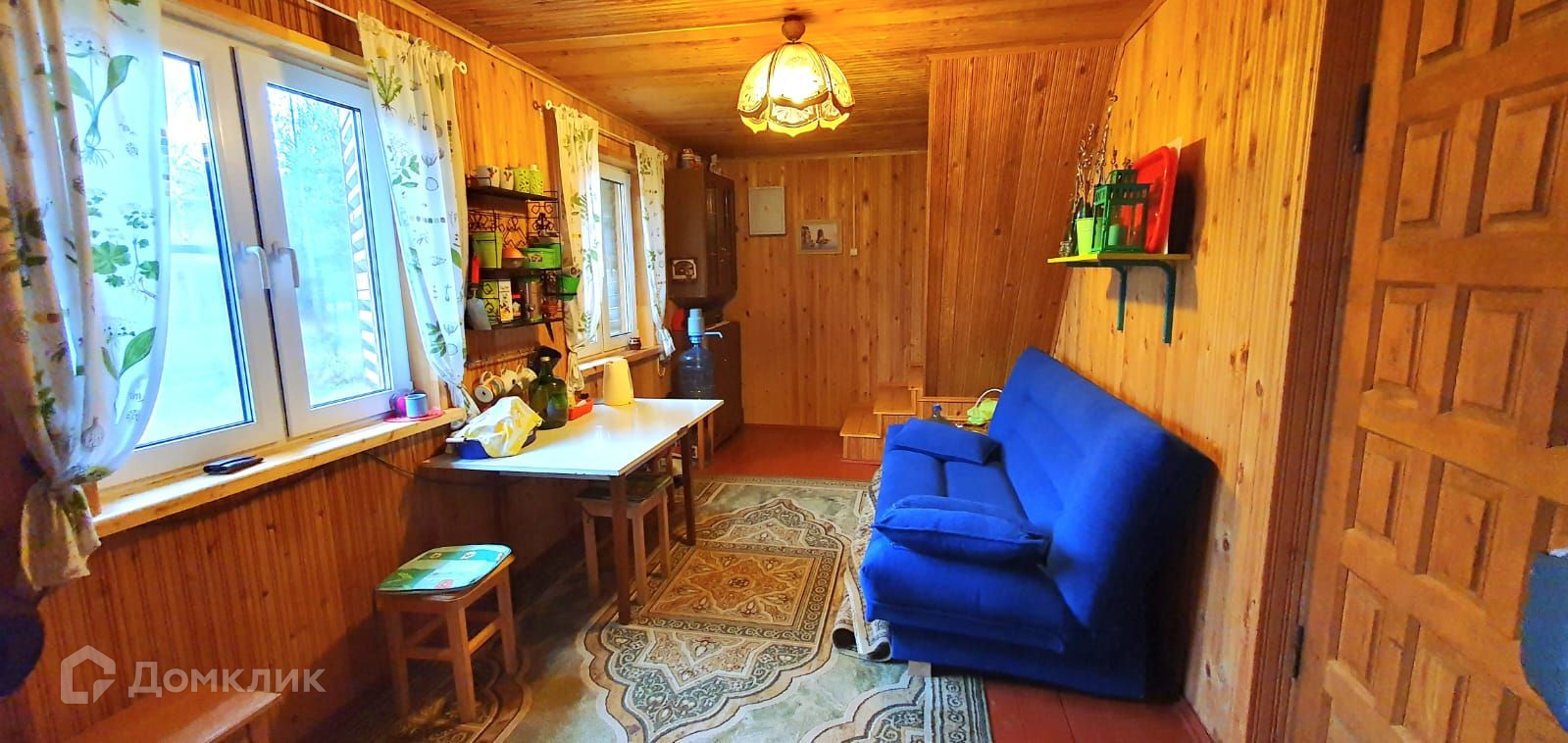 Дом сложен из бруса, снаружи отделан вагонкой, располагается на ленточном фундаменте.