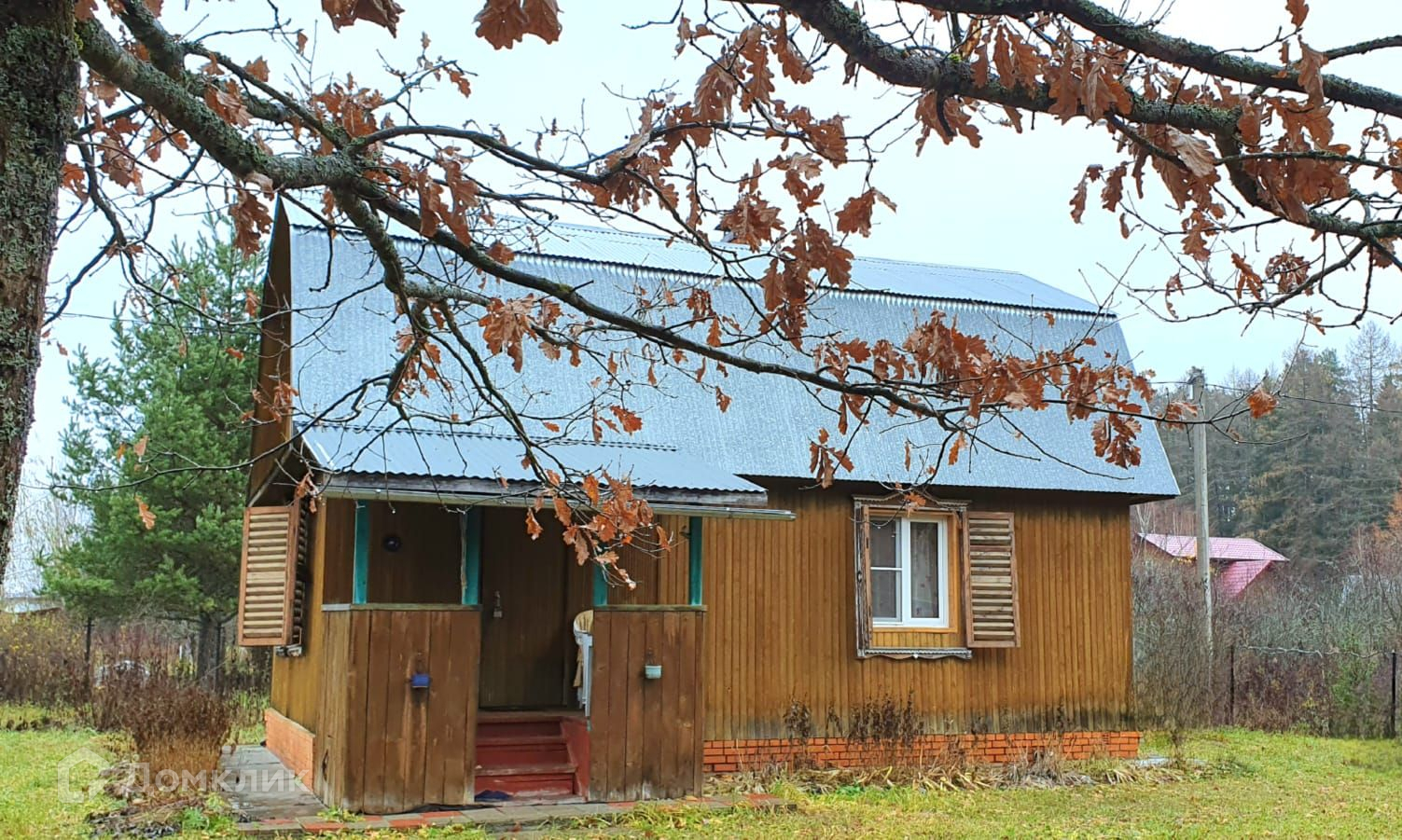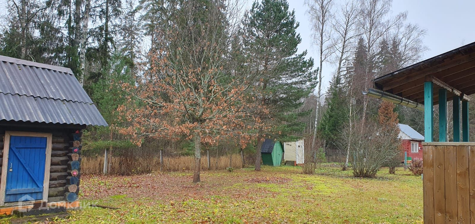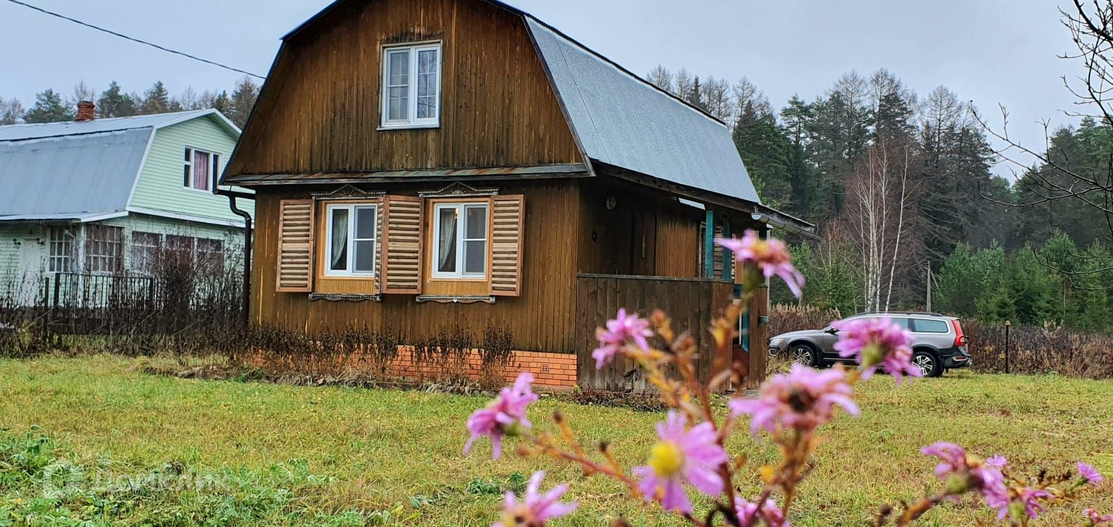 Дом возведен на ухоженном участке в  10 соток правильной прямоугольной формы, обнесен забором, есть место для парковки машины. Участок имеет собственный выход в  грибной лес.