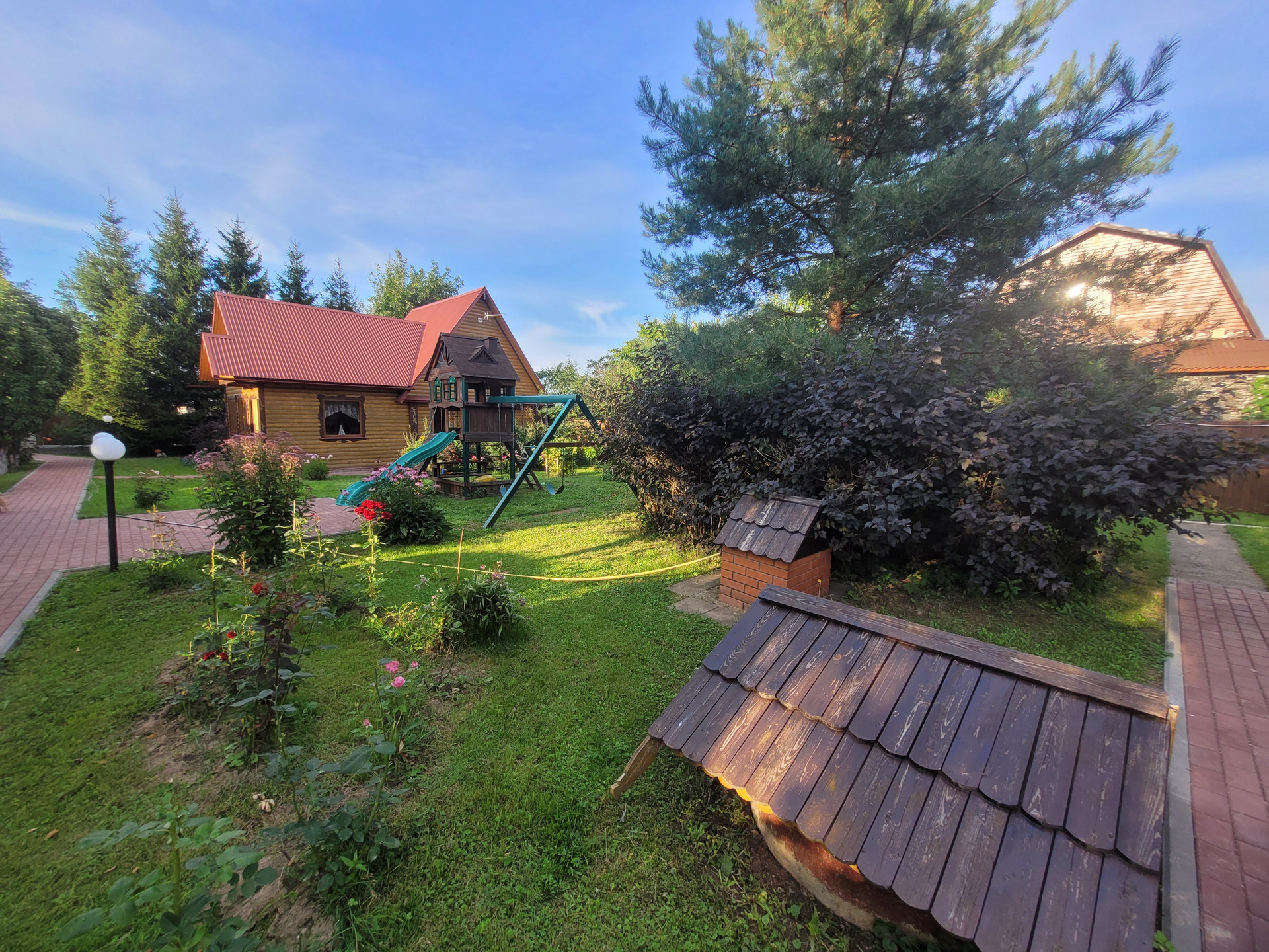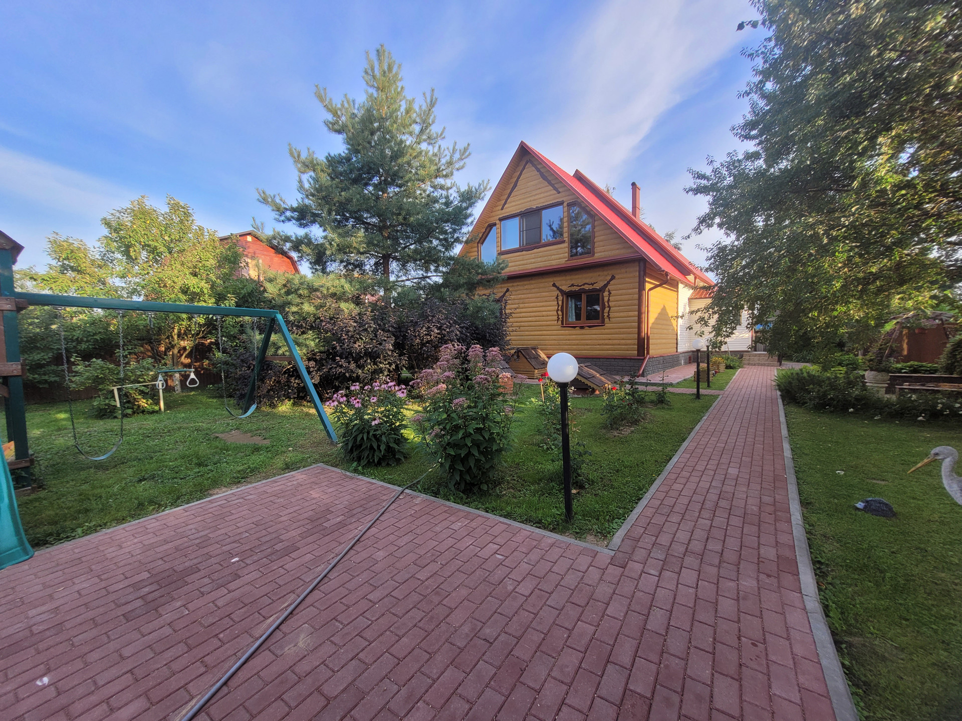 Дом площадью 185 м2, расположенный на участке площадью 2642 м2, состоит из цокольного этажа и двух жилых этажей, находится в одном из самых зеленых городов Подмосковья-Дмитрове, при этом в таком месте, которое сочетает удобное транспортное сообщение, близкую развитую городскую инфраструктуру: школа, детские сады, магазины и в то же время есть возможность уединения и отдыха от городской суеты.