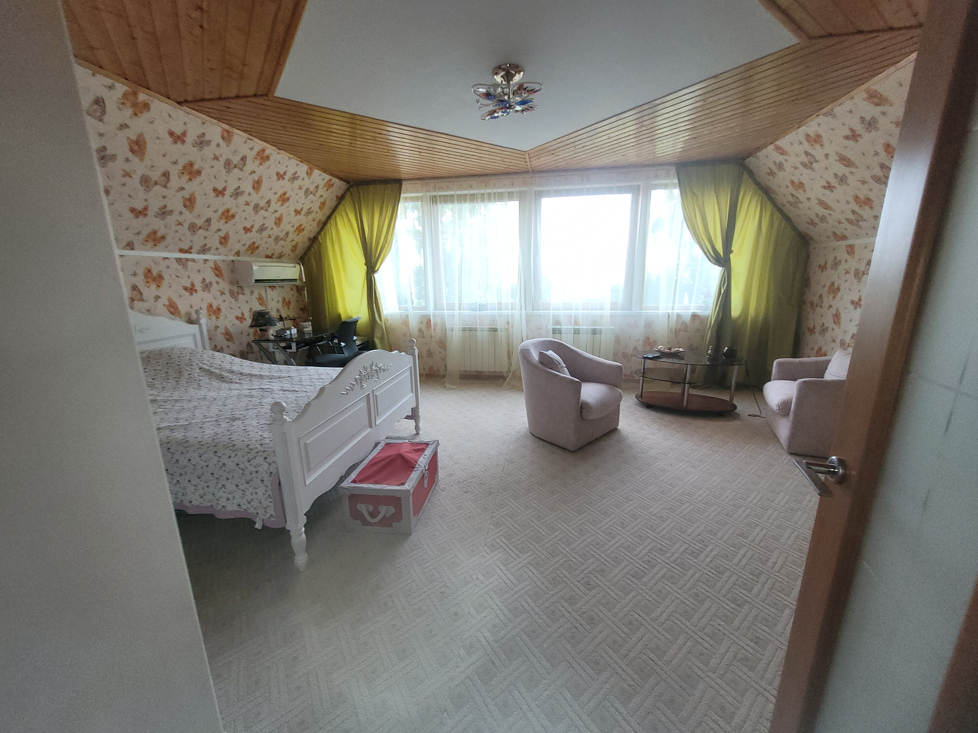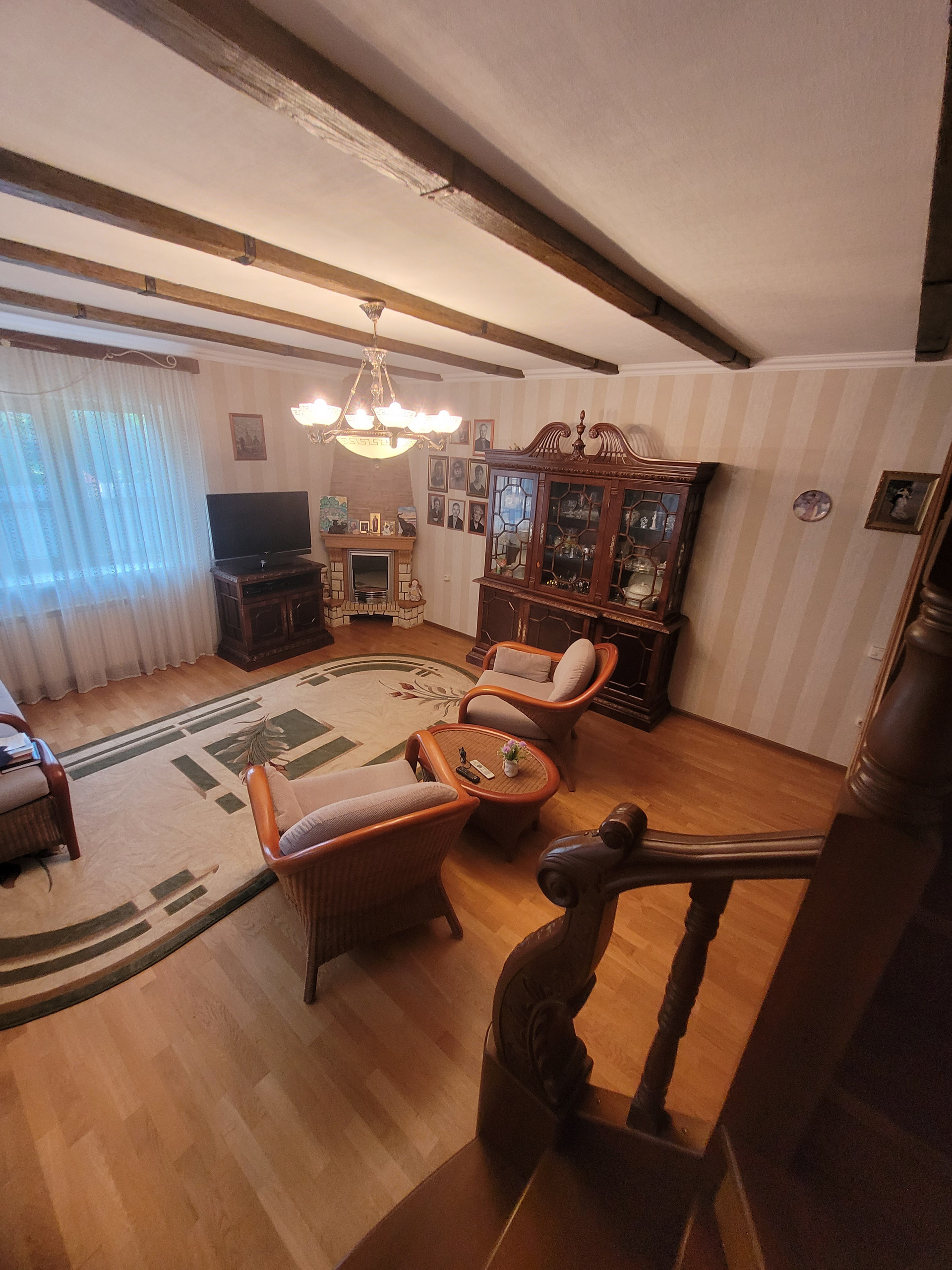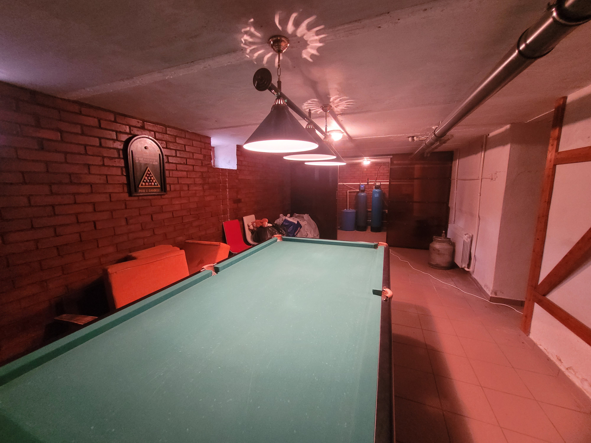 В цокольном этаже, высотой 2,2 м предусмотрена зона отдыха,погреб,зал для бильярда. Вся техника и аппаратура (котлы, бойлеры), расположенные в доме и бане-производства государств Евросоюза. Стены цокольного этажа выполнены из бетонных блоков и дополнительно усилены кирпичом. На первом этаже расположены гостинная, три жилых комнаты, санузел с теплым полом, подсобные помещения, на втором этаже расположены две комнаты, общей площадью 54,6 м2, одна из которых выполняет роль личного кабинета с панорамным видом на все владение, вторая служит спальней. На втором этаже также расположен просторный санузел. После трудовых будней отдохнуть и восстановить силы приятно в бане, которая может послужить и уютным гостевым домом, с дорогим камином производства Финляндии, прошедший проверку временем и сохранивший при этом первозданный вид. На участке найдется место для занятий представителям разных поколений и увлечений.