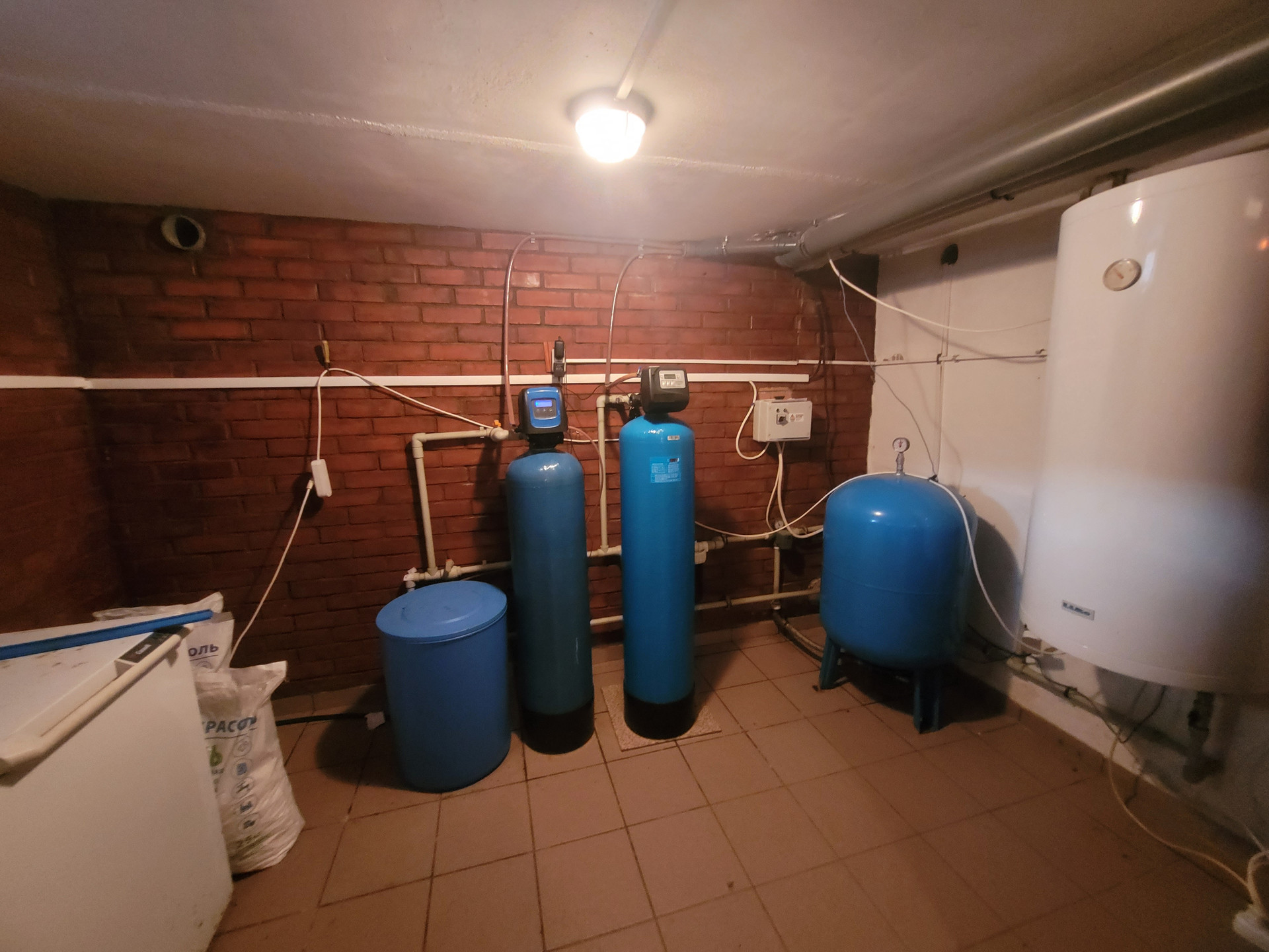 По периметру дома сделан дренаж, с выводами к 2 колодцам, которые позволяют производить наблюдения за уровнем грунтовых вод. Канализация обеспечена двумя канализационными колодцами, каждый на четыре кольца с переливом. Вода заведена в дом с глубины 209м посредством скважины, что позволяет пить чистую артезианскую воду. Резервный источник воды-колодец на 24 кольца. Дополнительную очистку воды обеспечивает специальная автономная система.
