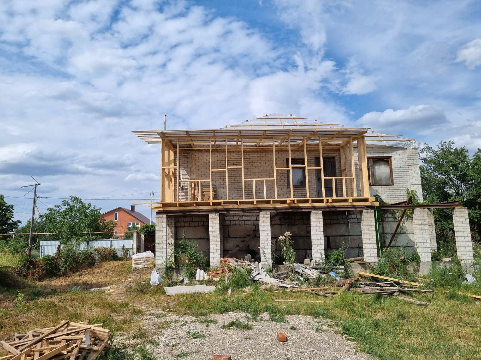 Продается участок 8 соток с домом, размер 12*12. Район Ленты. Дом двухэтажный из белого кирпича, внутри без ремонта, окна деревянные. На первом этаже на всю площадь большие, просторные гаражи(можно при желании сделать и жилое), второй этаж жилой. Три спальни, гостиная, прихожая, кухня и санузел. Проведено электричество. Крышу сняли, хотели менять. Была шиферная. Пока стоит без крыши, под пленкой. Большой, просторный въезд для машин, огород-задний двор. Въезд на участок с улицы и с заднего двора. Один собственник. Реальному покупателю возможен торг.