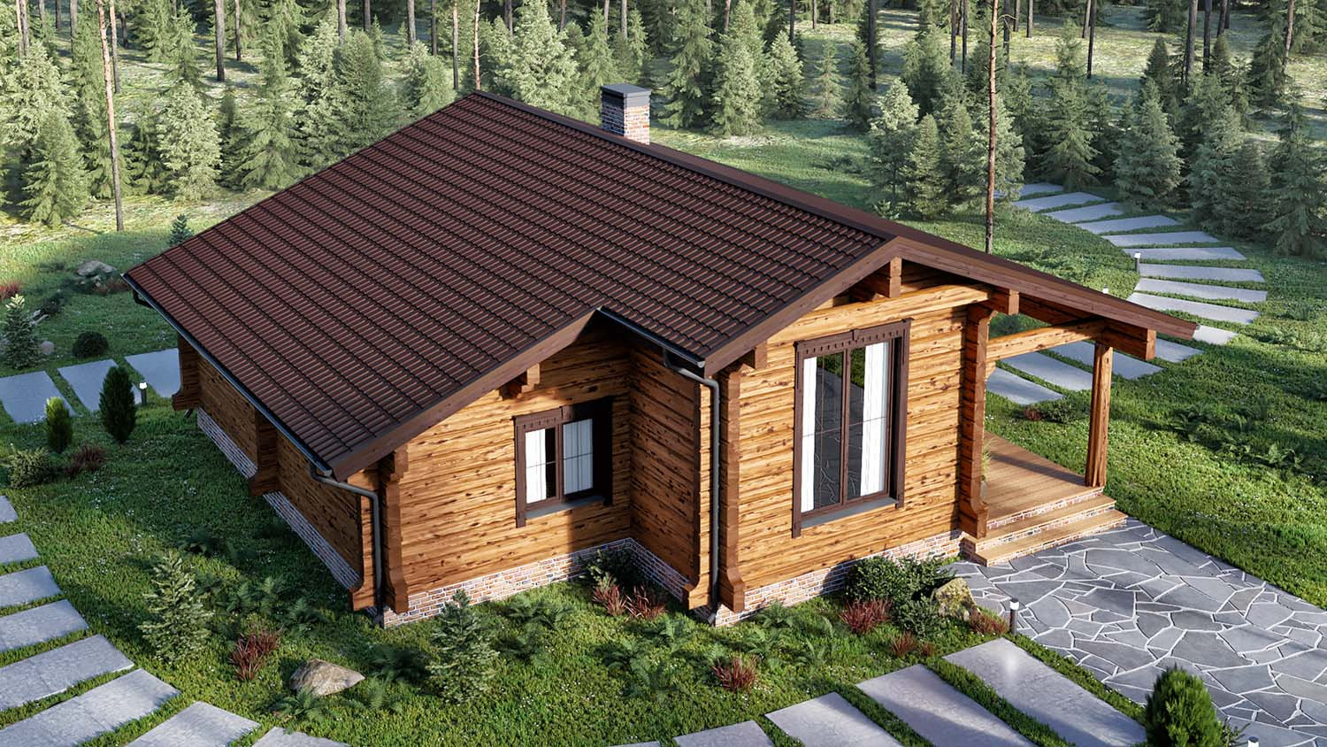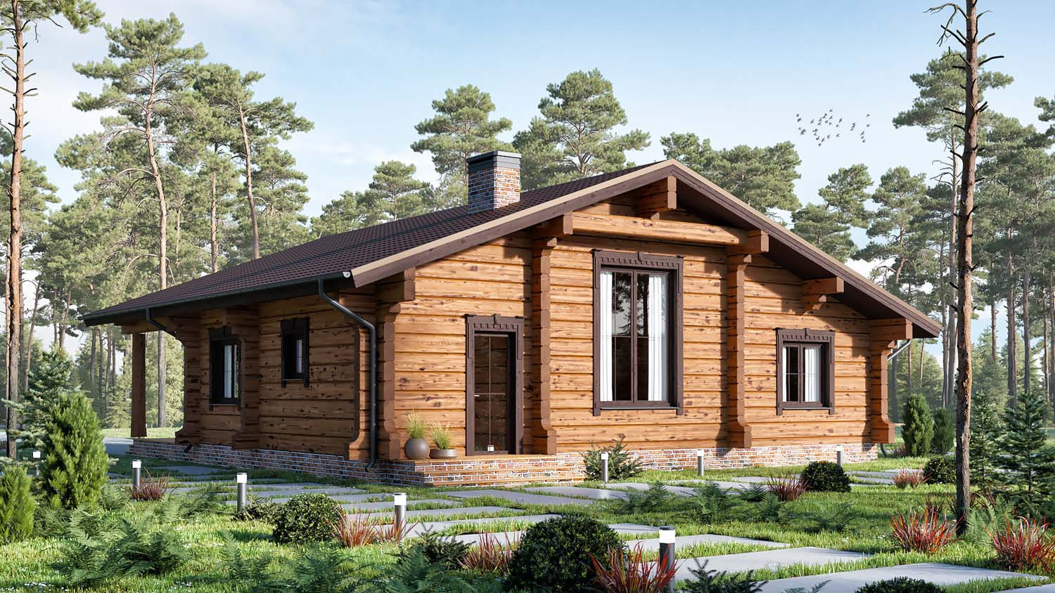 Дом «Печора» выполнен по норвежской технологии из лафета сечением 200х320 мм. Лаконичный одноэтажный дом, в котором каждый метр используется по назначению. Несмотря на простоту форм, дом выглядит интересным за счет деталей – резные наличники, стяжки слег, фигурные торцы, подкупающие своим очарованием.