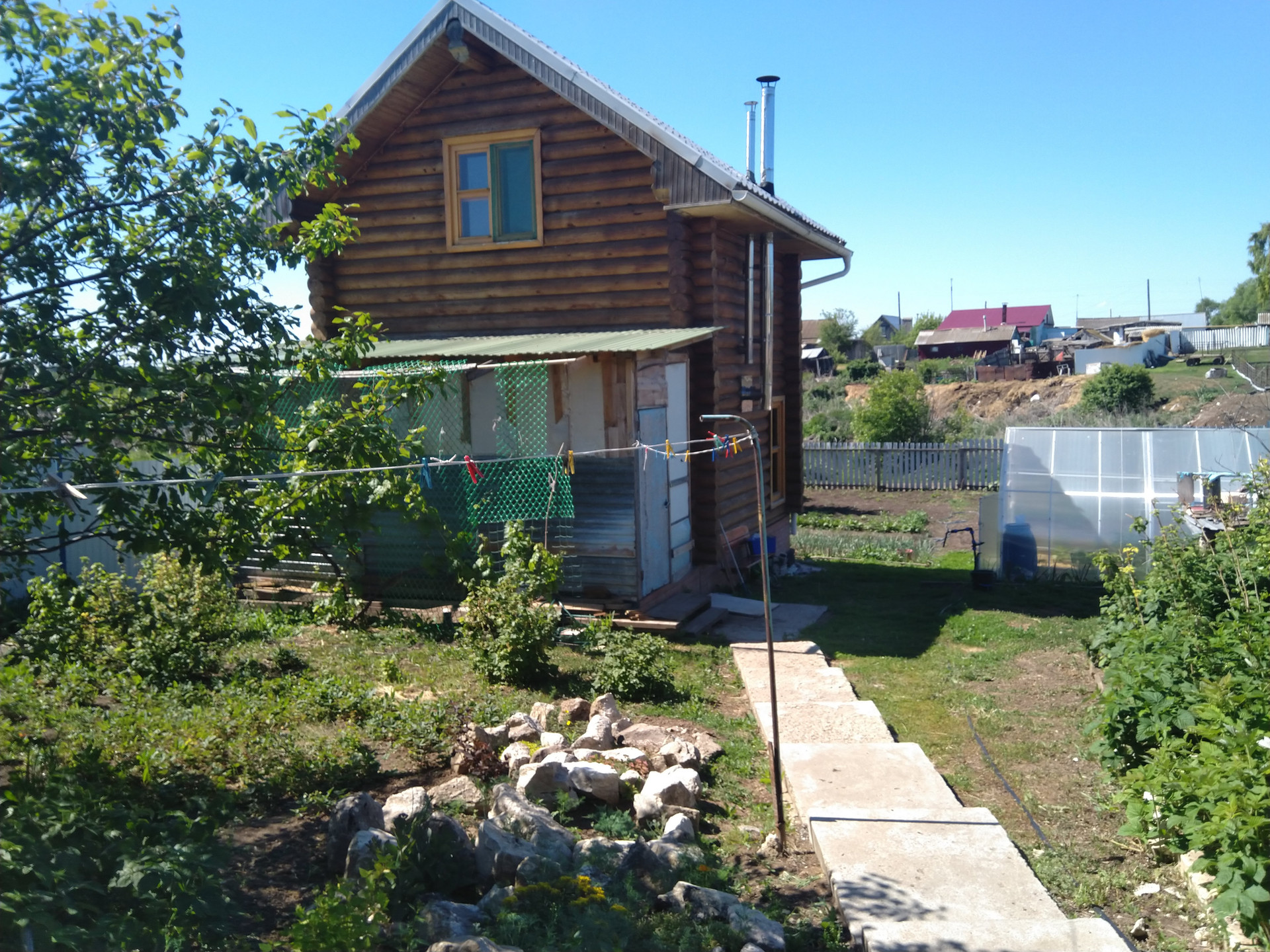 трехкомнатная квартира в доме на 2-х хозяев с разными входами. Дом 1-этажный, кирпичный 45 кв. м. с пристроенной открытой верандой 3х7. Дом: зал, спальня, комната, кухня, столовая, сени, котельная. В котельной раковина, унитаз, новый котел отопления. Окна пластиковые. Газ, вода, электричество центральные, на все счетчики. Выгребная яма. Баня двухэтажная срубовая 5х6., 2009 года постройки, с газовым отоплением (немецкий котел), принята в эксплуатацию газовой службой. 1 этаж: душ, туалет, большой предбанник, парная на дровах. 2 этаж жилой. Участок ровный, ухоженный. Много насаждений ( яблони, вишни, сливы, груша, абрикос, малина, клубника, смородина, крыжовник)., декоративные растения(розы, туи и проч., теплица 3х6. Для полива большая металлич. емкость, капельный полив в теплице, летний водопровод по участку. Металлический забор по периметру. До участка дорога -щебень. до Самары 70 км., до райцентра Красноармейское 14 км. Рядом с поселком множество озер. Магазин, детсад, школа.