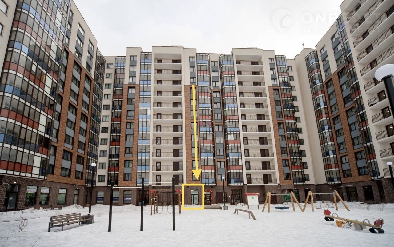 Второй вход со двора, во дворе школа и детский сад на расстоянии 80-100 метров. Дом заселён.  Аналогичные помещения по соседству арендуют крупные сетевики, такие как: