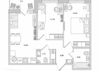 Общая площадь: 63.44 м2