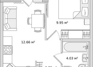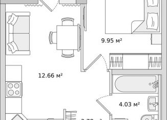 Однокомнатная квартира на продажу, 35.4 м2