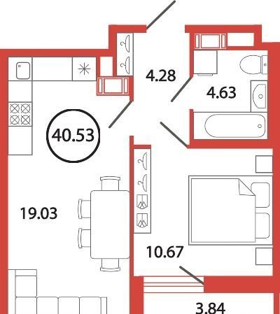Общая площадь 40.5 м2