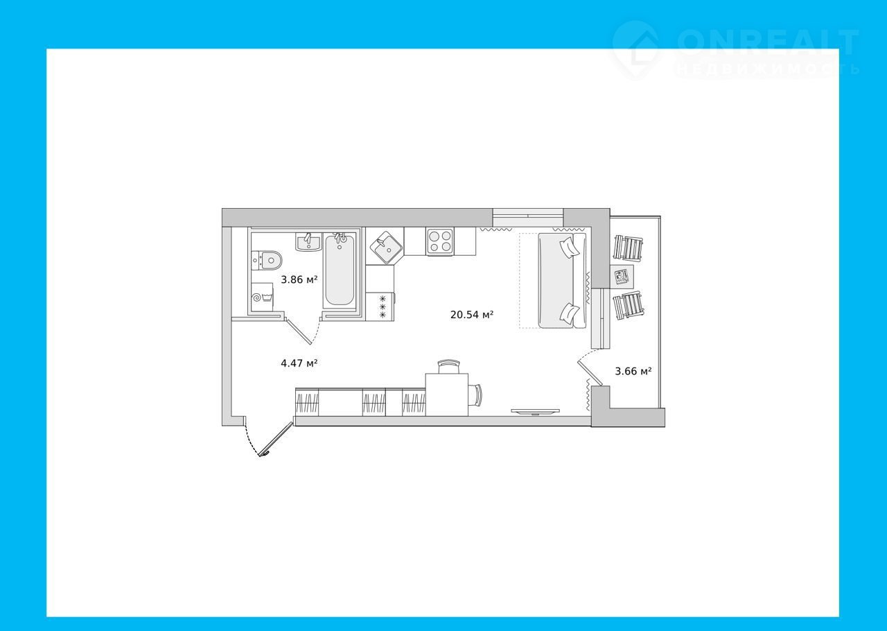 Общая площадь 28.5 м2