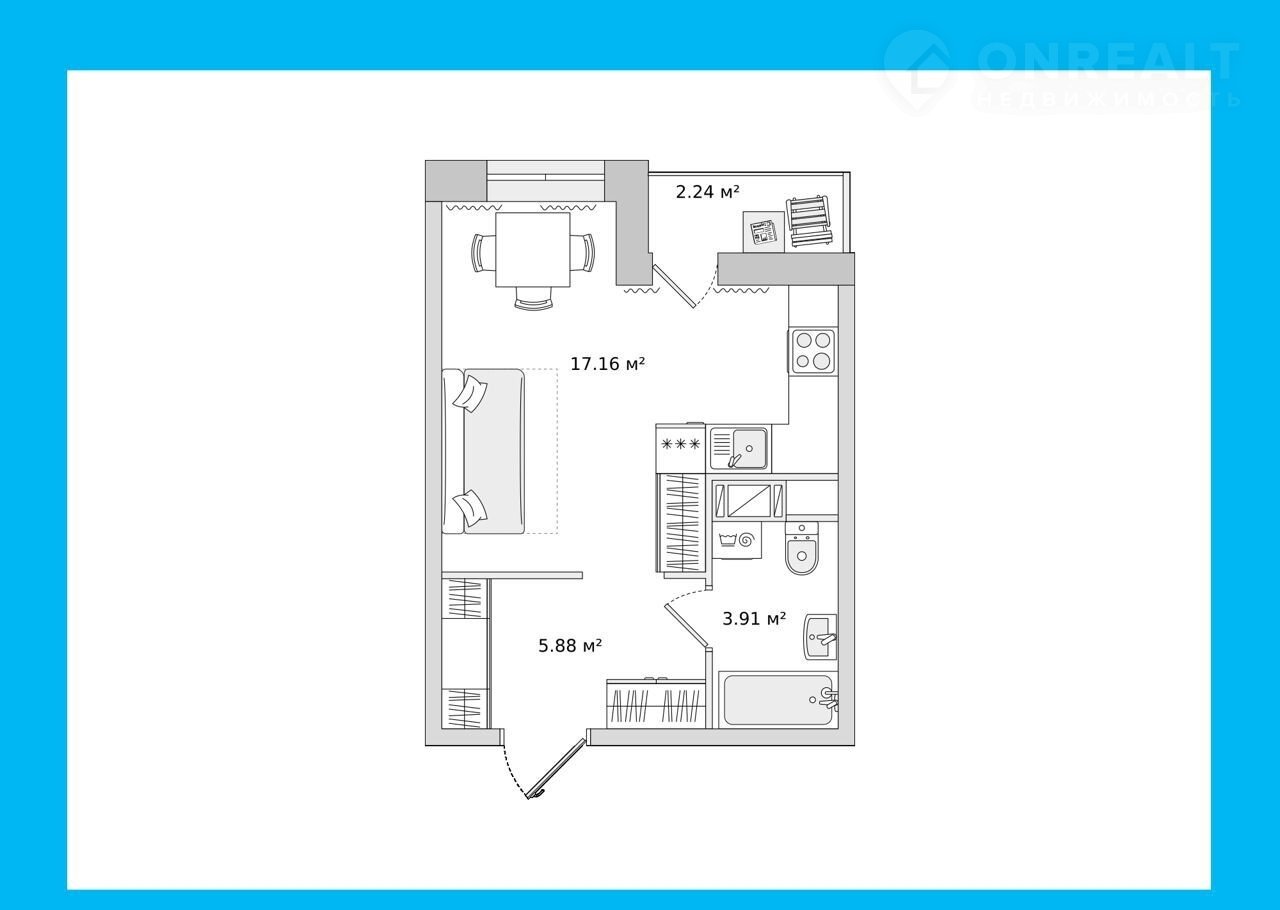 Общая площадь 27.2 м2