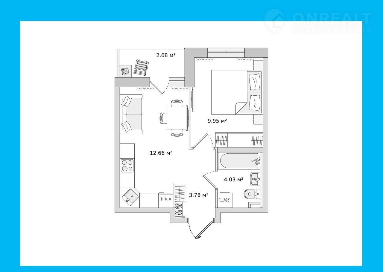 Общая площадь 34.5 м2