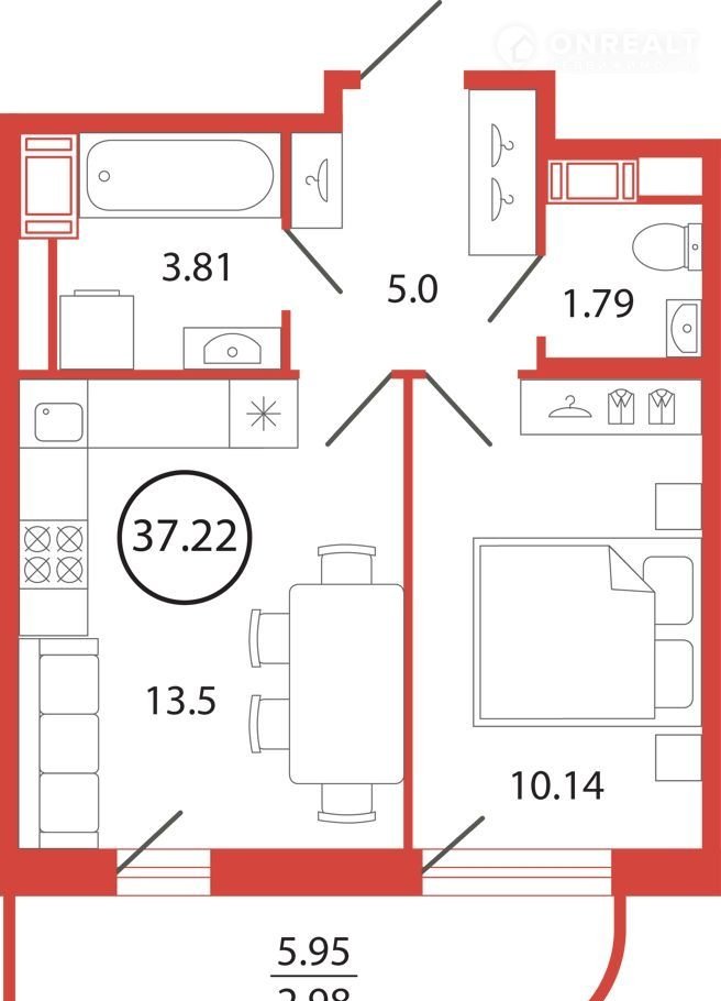 Общая площадь 37.2 м2