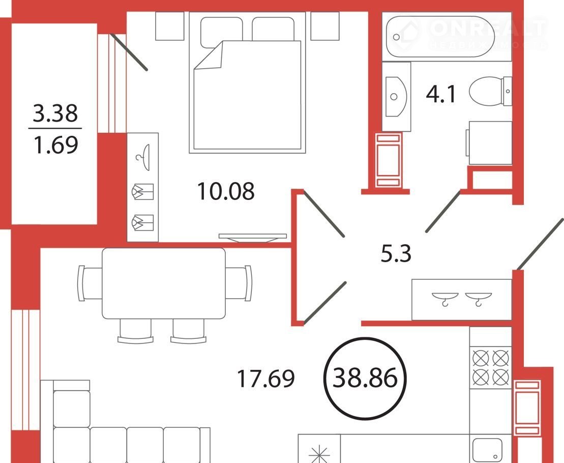 Общая площадь 38.9 м2