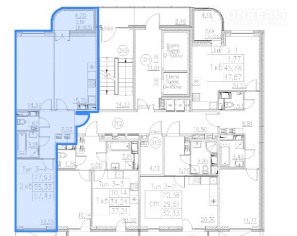 Общая площадь 55.3 м2