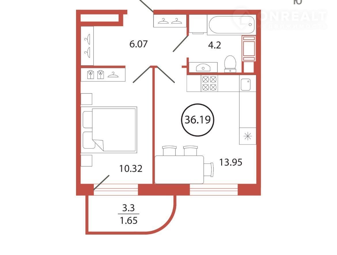 Общая площадь 36.2 м2