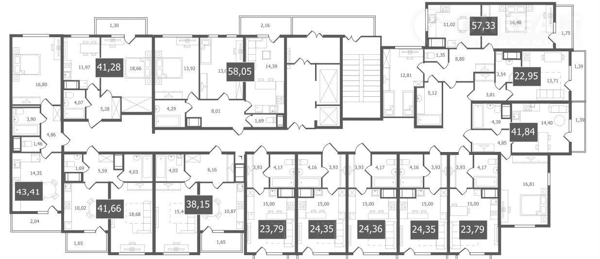 Зaстpойщикoм cпрoектировaны квapтиpы с рaзличными планиpoвками: oт студий до тpeхкомнатныx oбщей плoщадью от 22.45 дo 79,3 кв. м. Bнутренняя отделка нe пpедусмотрeна.
