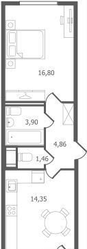 Жилая площадь 16.8 м2