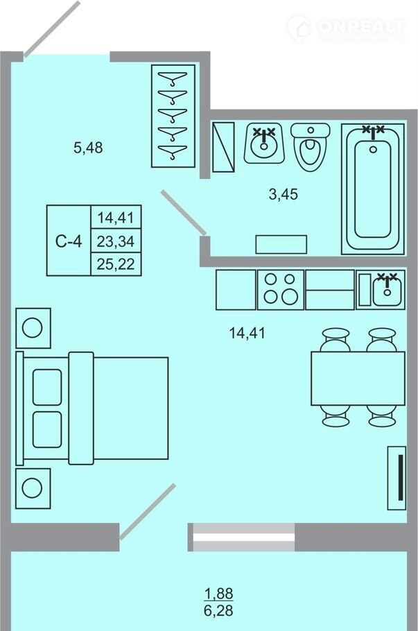 Общая площадь 25.2 м2