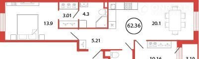 Общая площадь 62.4 м2