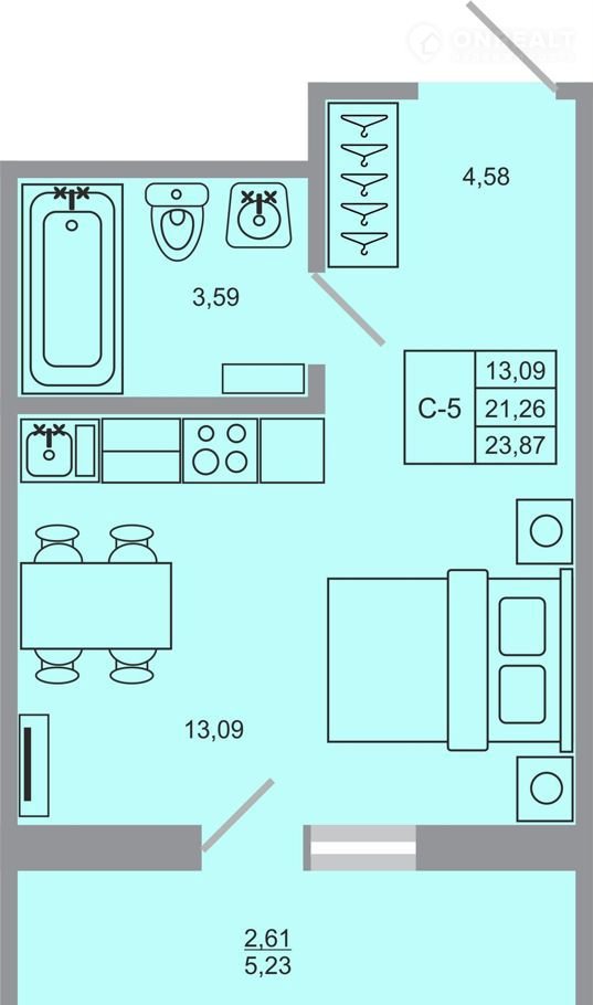 Общая площадь 23.9 м2