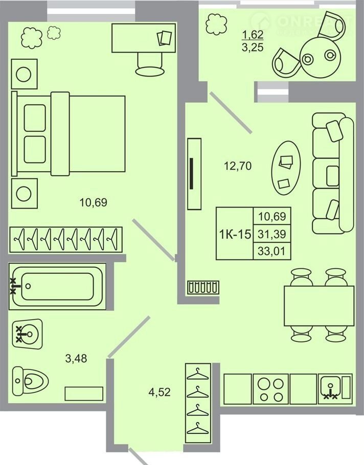 Общая площадь 33 м2