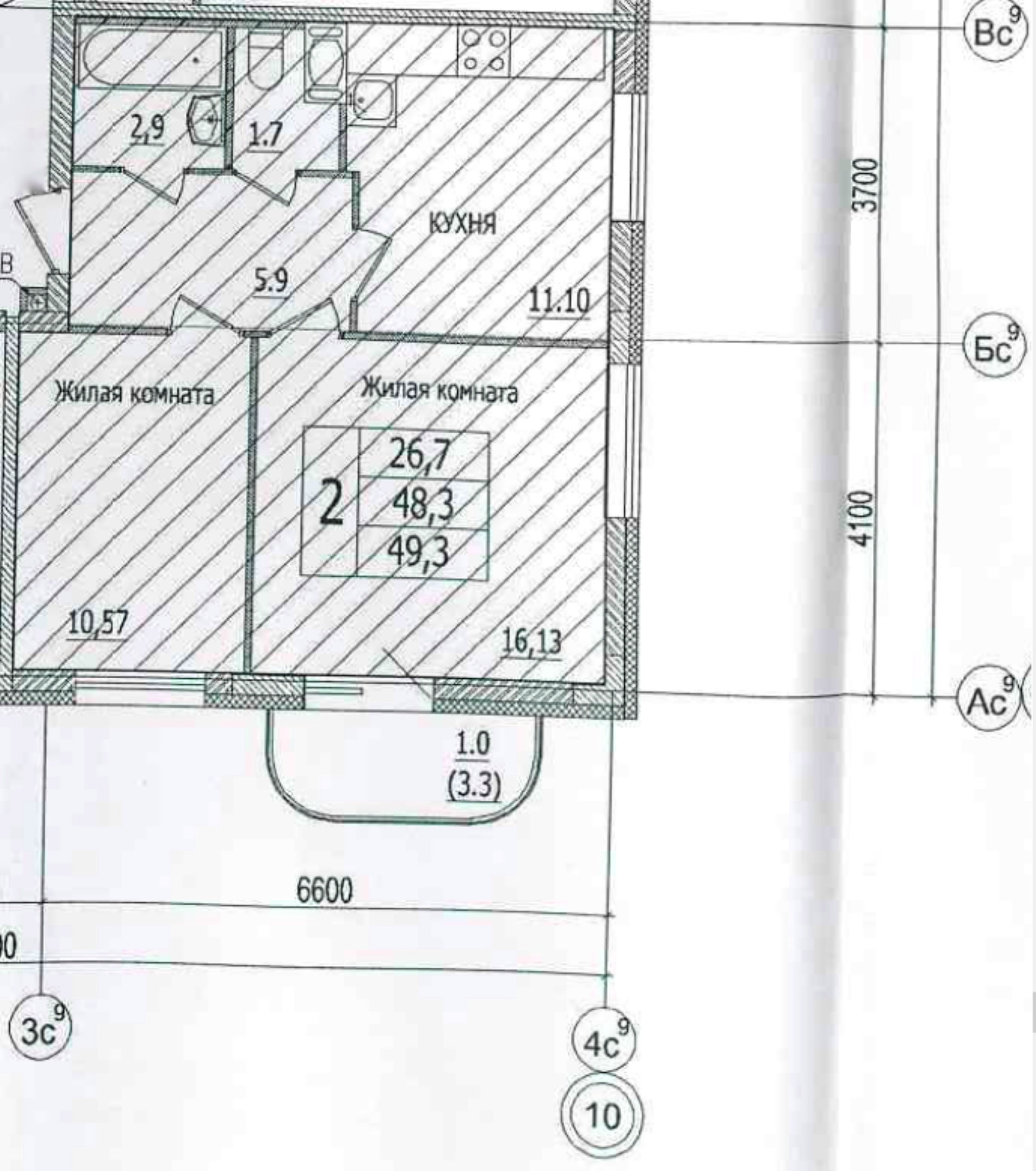 Общая площадь 49.3 м2