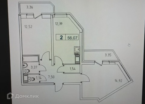 Метраж квартиры 53,1 м.